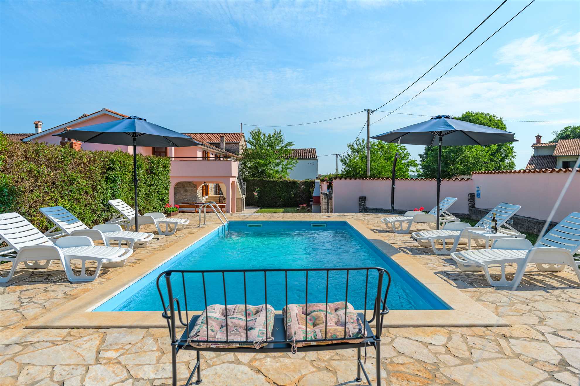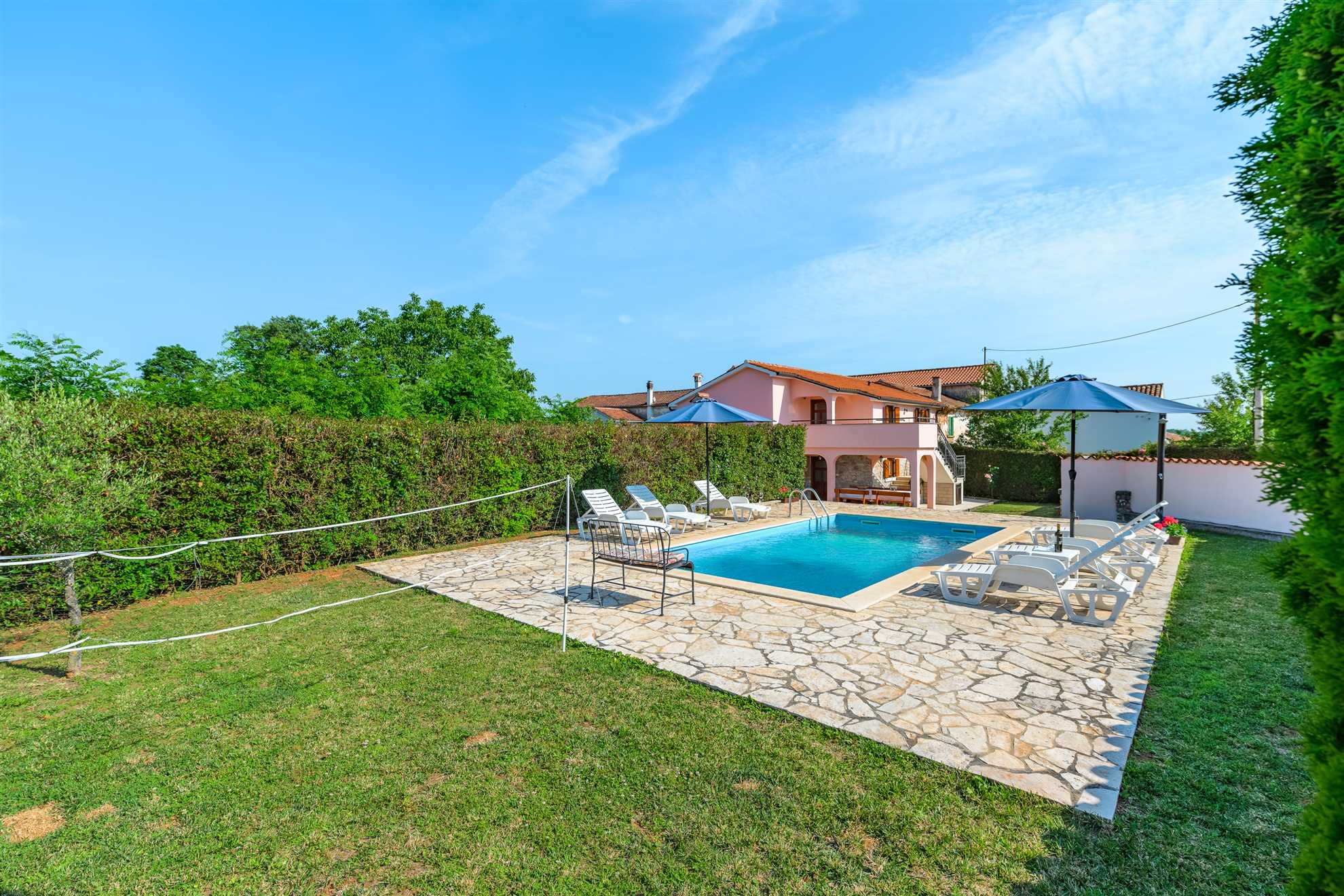 Villa Legović is a stylish two-floor holiday villa in Muntrilj near Pazin, offering 110 sqm of fully private living space exclusively for your group, with no other guests on the property.