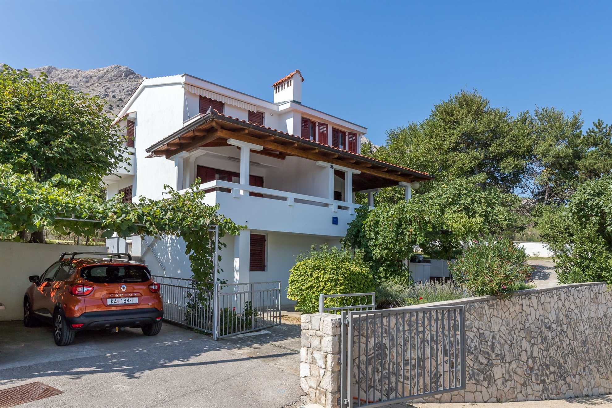 Additional amenities include air conditioning, Wi-Fi, SAT-TV, and private parking, ensuring a comfortable and practical stay. Although situated in a quiet part of Baška, the apartment is only a short walk from the beach, shops, restaurants and the seaside promenade, allowing you to enjoy both tranquility and easy access to all local highlights. Guests benefit from private parking and an on-site EV charging station, a convenient feature for electric vehicle owners.