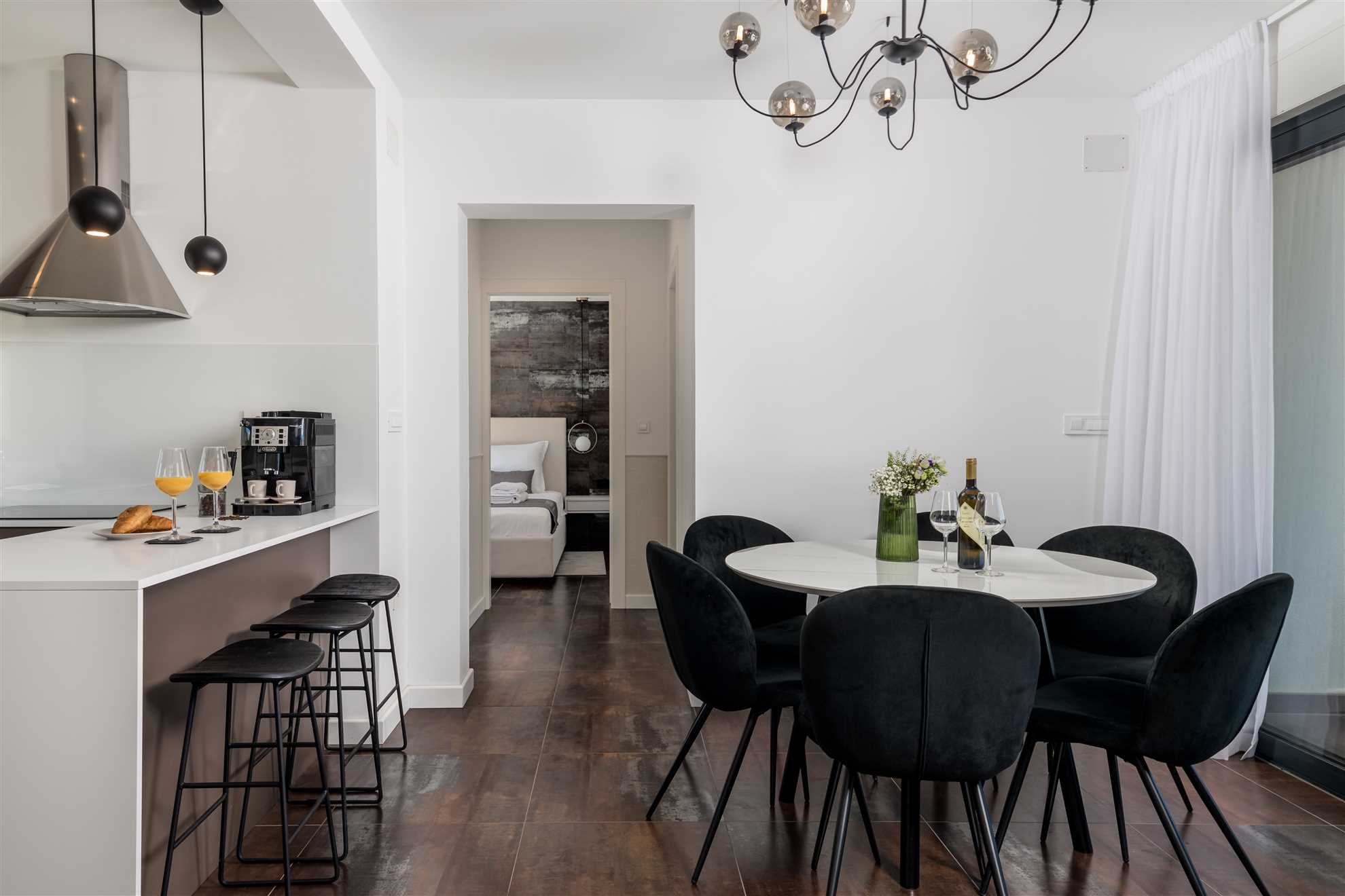 The apartment includes two luxurious, air-conditioned bedrooms, each with its own modern bathroom, ensuring peaceful sleep and complete privacy. Each bedroom is furnished with premium beds, offering exceptional comfort and relaxation.
