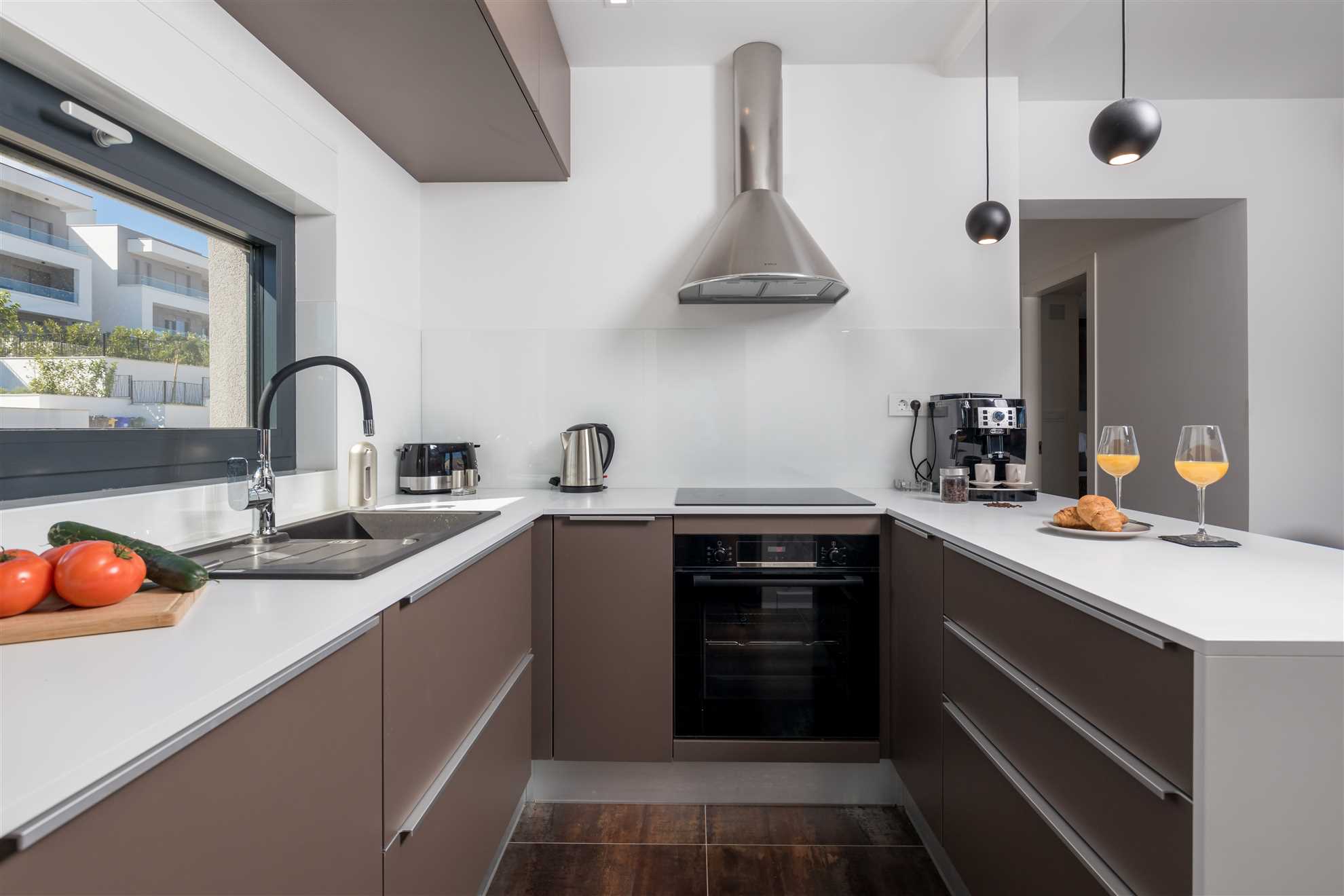 The kitchen is fully equipped with modern appliances, including a refrigerator, oven, electric cooktop, kettle, and toaster, making it easy to prepare delicious homemade meals. The dining area near the kitchen provides a pleasant and functional space for shared meals.