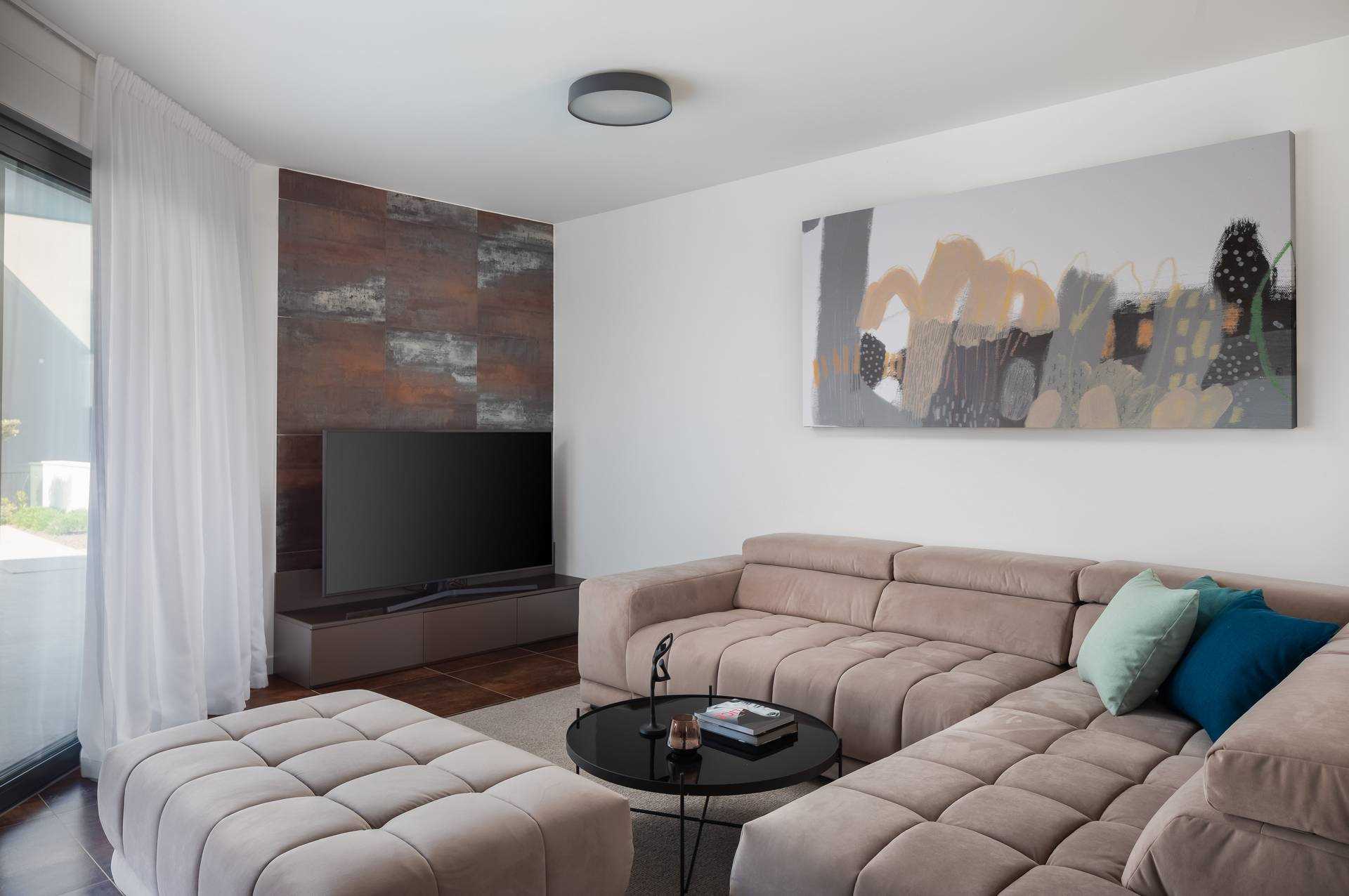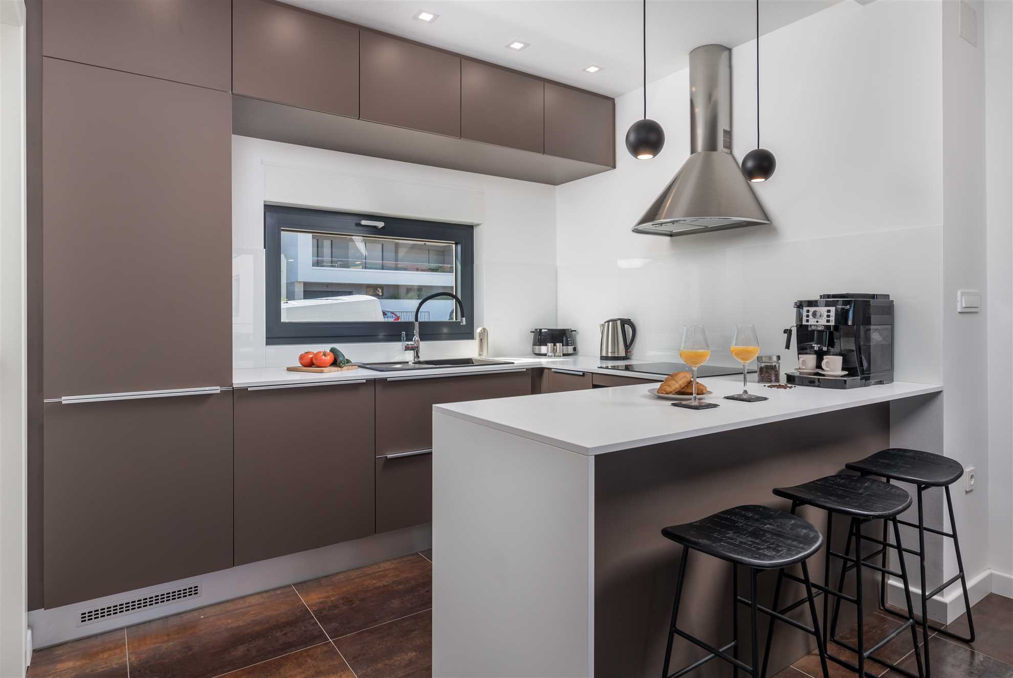 The apartment spans 84 m² of thoughtfully designed space, featuring elegant interiors and ample room, ideal for families or groups of up to 5 guests. The bright and spacious living room with comfortable seating is perfect for relaxed family moments or socializing while watching TV, while the panoramic views through large windows create a sense of connection with nature and the sea.