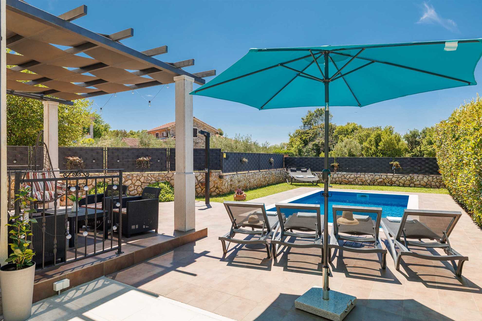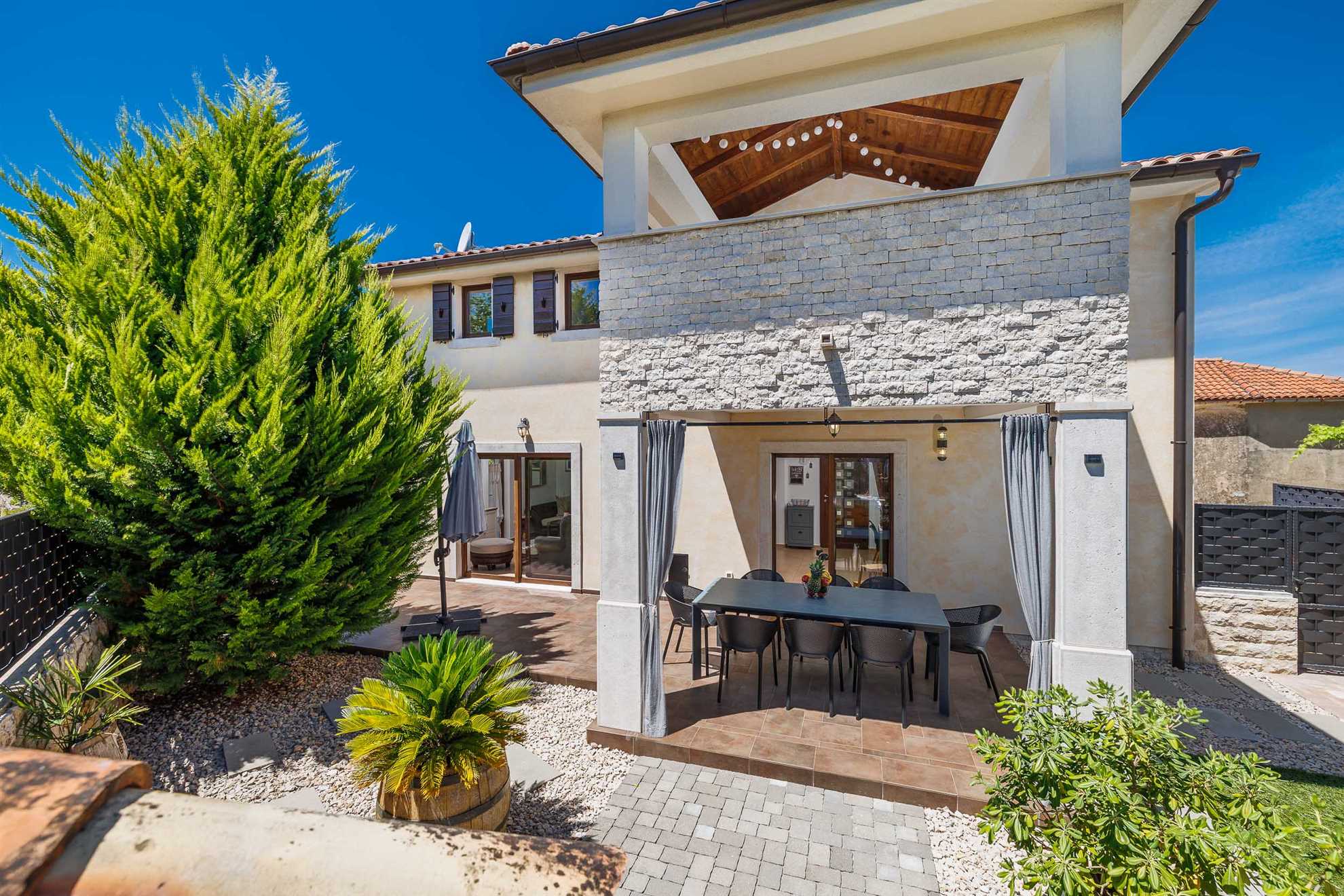 Villa Willheim is a true paradise retreat, where luxury and carefree privacy meet. It is located in a peaceful environment, just a few minutes' drive from the crystal-clear sea, and represents the ideal choice for those seeking high comfort while still being close to tourist attractions. This villa is a real gem that combines Mediterranean elegance with modern luxury, making it the perfect choice for anyone wanting a relaxed yet prestigious vacation.
