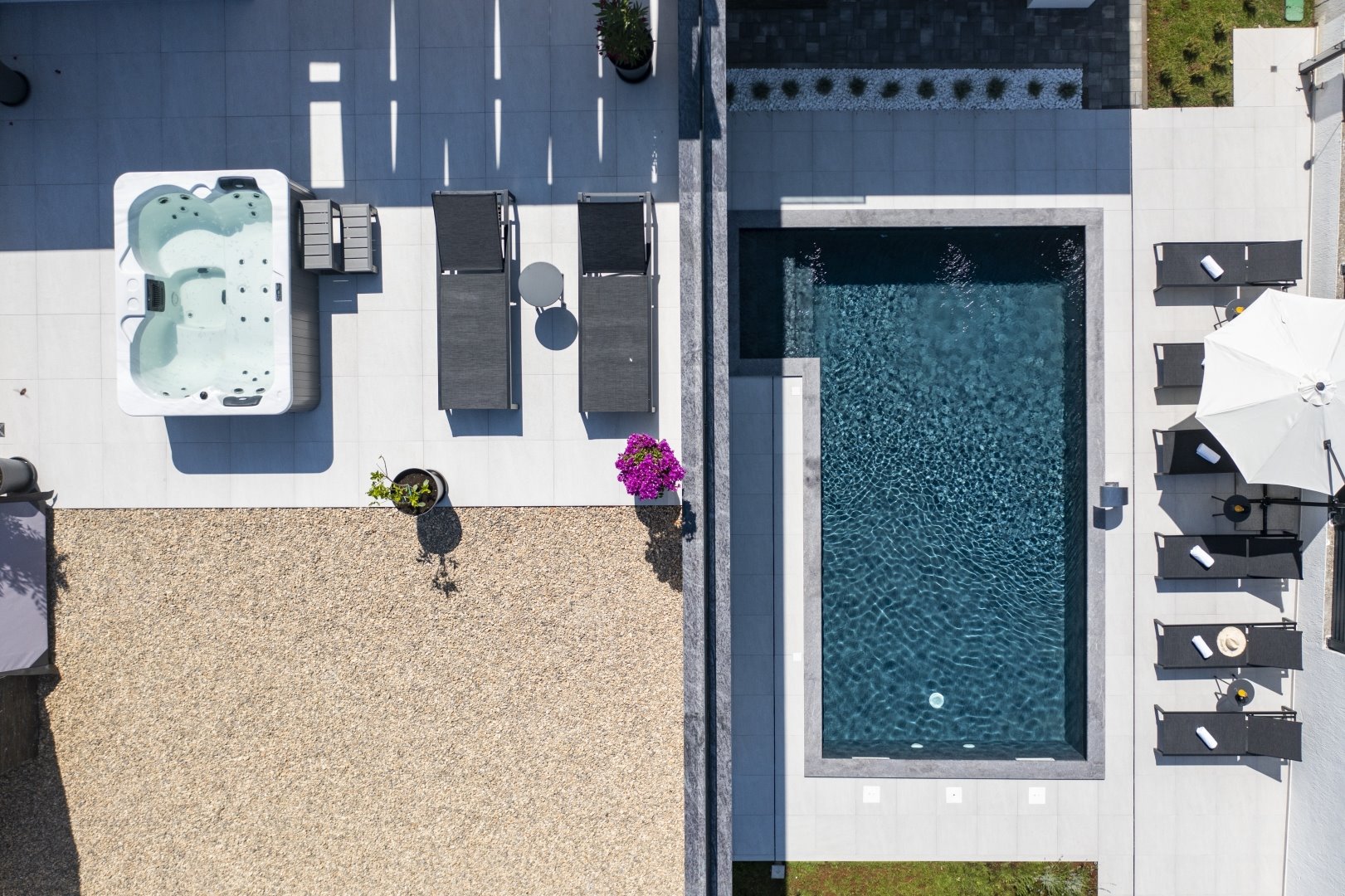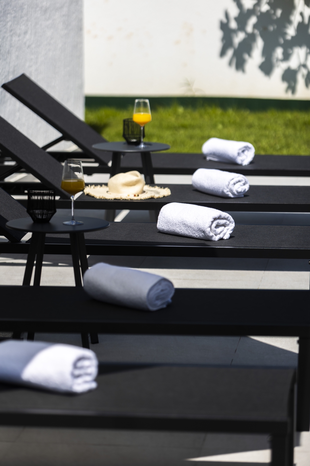 Guests can enjoy ample space for relaxation both in the sun and in the shade. High-quality, modern garden furniture is available throughout the property, including sun loungers, tables with chairs, sunshades, garden sofas, and armchairs. For our youngest guests, a selection of water toys is also provided.