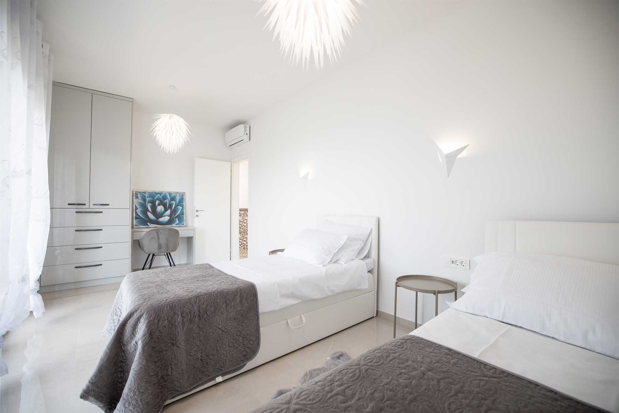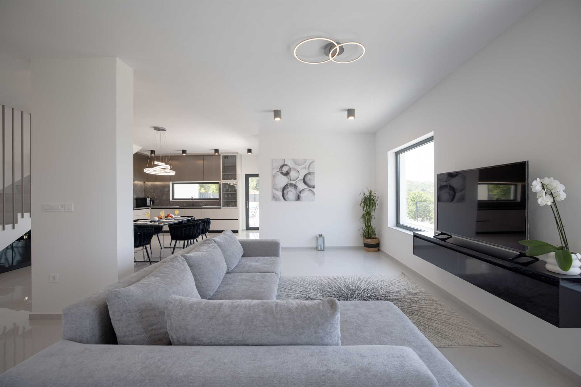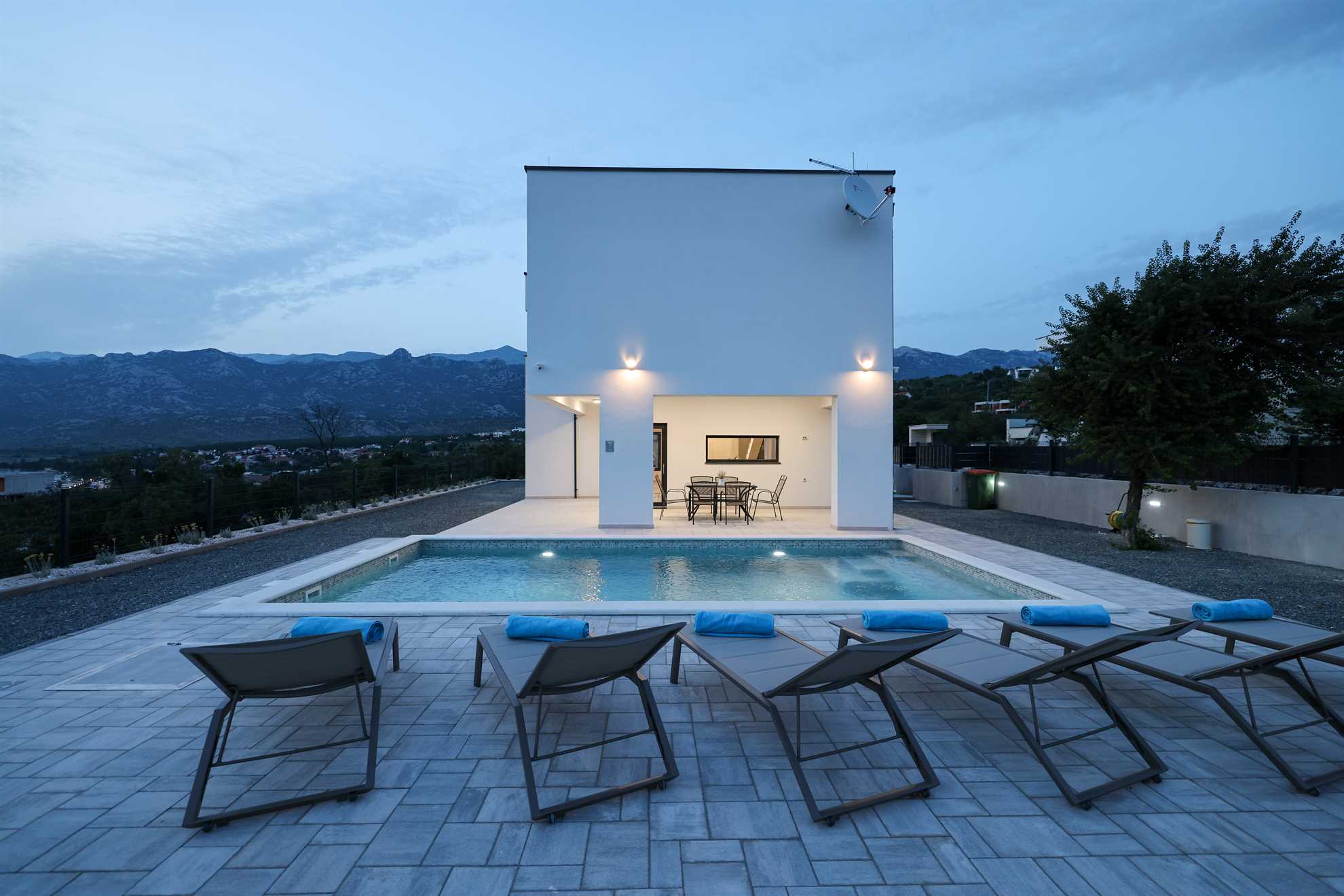 Offering splendid views of the sea and the Dalmatian mountain range, Villa Luna, being one of the newest addition to the market, is ready to welcome families and friends and making holidays come true. Only 10 minute walk to the beach and 30 minutes drive to Zadar it is conveniently situated providing refuge and tranquility ensuring a relaxing holiday, yet easily approachable bigger city to explore culture, excellent restaurants and nightlife. The interior is designed with simple elegance, granting comfort and smart efficiency. Ground floor yields a large living area equipped with a corner sofa and a flatscreen TV, and also a contemporary sleek kitchen with an eat-in dining area with a table for six. Windows face the sea treating to incredible views. From here access the outdoor patio with a large pool, surrounded by sun loungers, an outdoor shower and a shaded dining area. On the first floor is the sleeping area with three en-suite bedrooms. Each of the bathrooms is quite impressive with creative lighting, some with double sinks, some with a tub and all with elegant features. Most notably, whether you choose to relax indoor or outdoor you will enjoy breathtaking sunset views above the Adriatic any evening of your holiday. Welcome to Villa Luna.