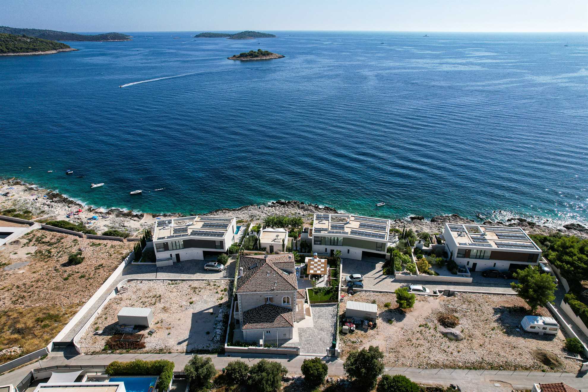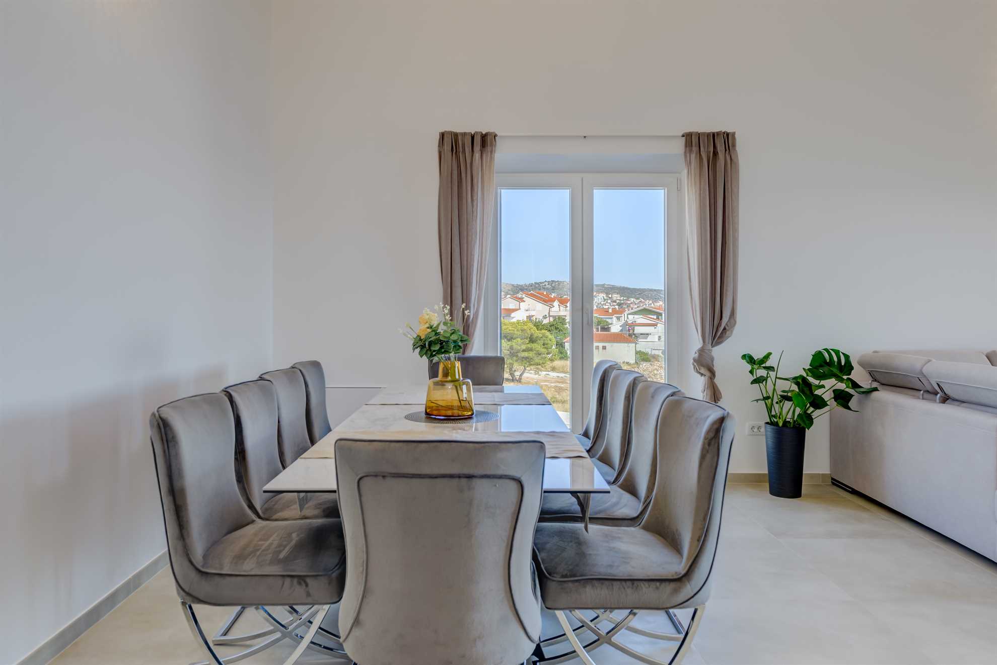 Villa Sea Pearl is in a second row of houses with a privilaged view of wild coast and sparkling blue water. Rogoznica, a former fishing village, is a popular tourist destination known for its sheltered bay, pebble beaches, calm sea and close proximity to Šibenik in one direction and Split in the other. Most notably, a UNESCO old town Trogir is a 30 minute drive and worth a visit. Because of its size the town is lovely for easy walks and much of its attractions, restaurants, shops and beaches are all nearby and can be reached on foot. We recommend visiting the local market for fresh fish and produce.