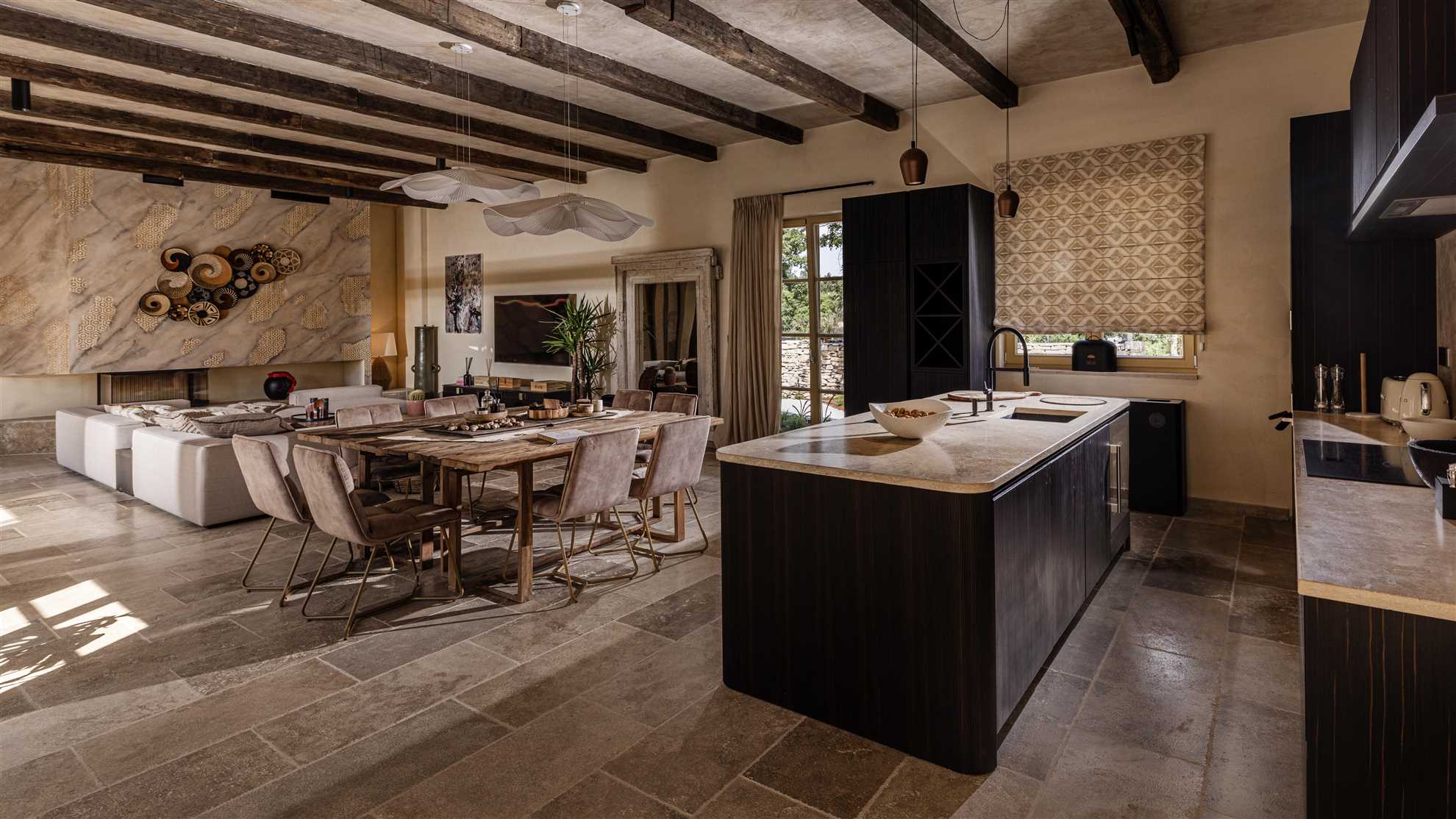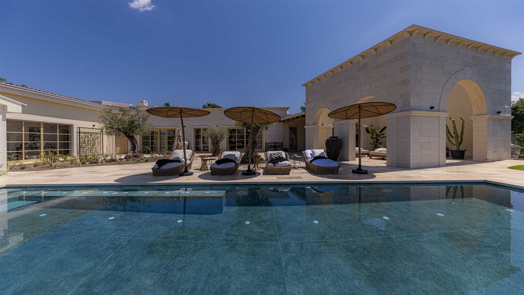 Home away from home, Villa Vitality oozes welcoming energy and is the kind of holiday escape you may find hard to leave behind. With warm colors and enchanting fixtures, eclectic furniture pieces, cozy fabrics, radiant and specious areas, and a clever layout each visitor will indulge in privacy, luxury, comfort and pure serenity. Spectacular interior design covering 280 m2 features raw and natural materials, modern accessories, and both exotic and native house plants. The theme continues beyond the walls, reaching a stone deck with a heated 56 m² pool, an outdoor covered kitchen with a dining area as well as a built in authentic barbecue, and a charming seating lounge. Delicate Mediterranean garden adds warmth while the lush greenery surrounding the property gives an incredible sense of privacy and tranquility making this property a true respite for the mind, body and soul.