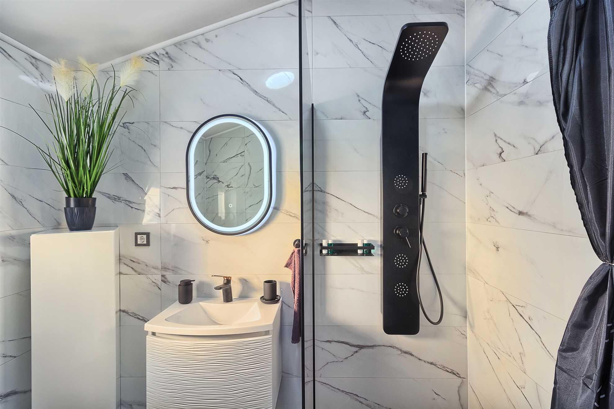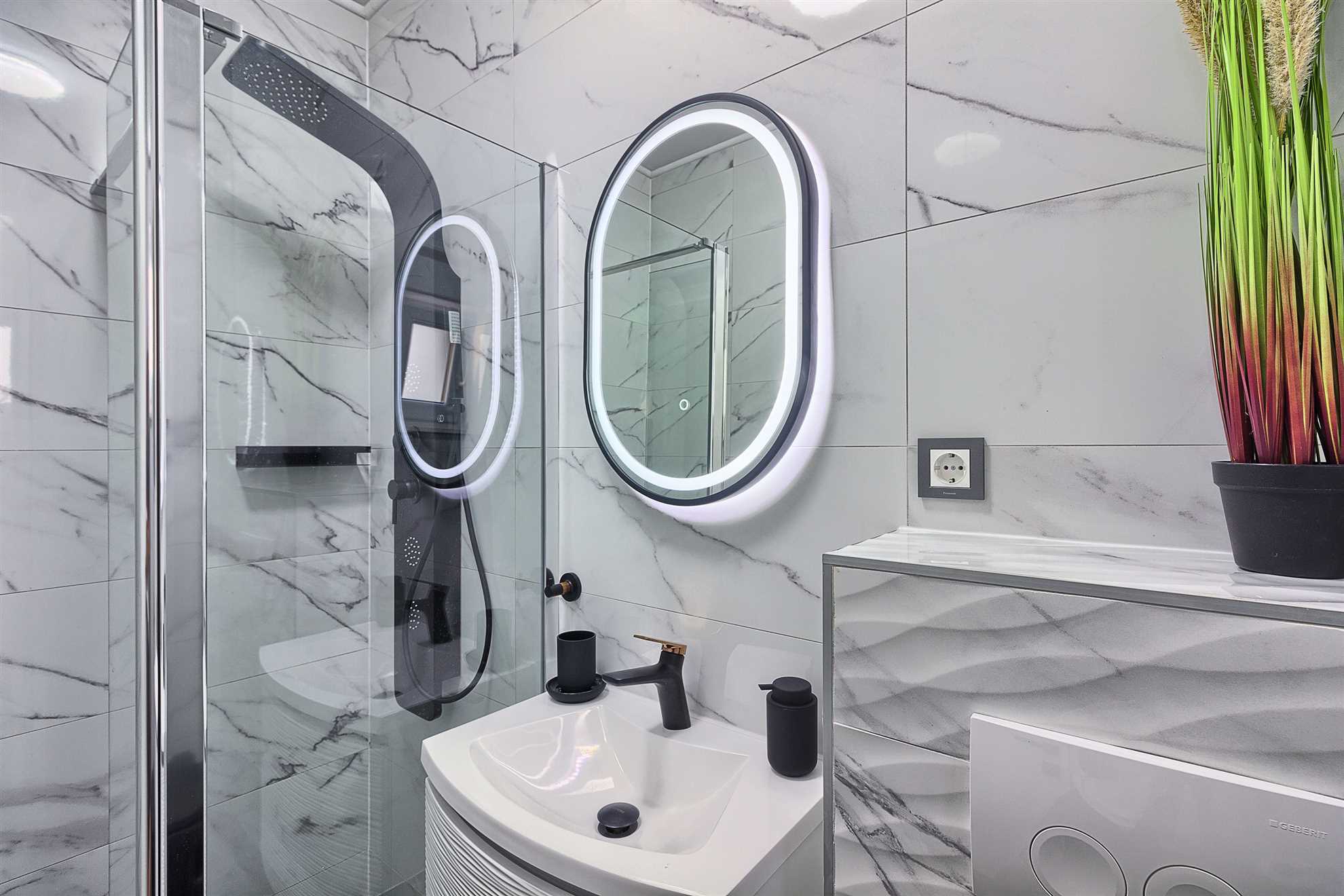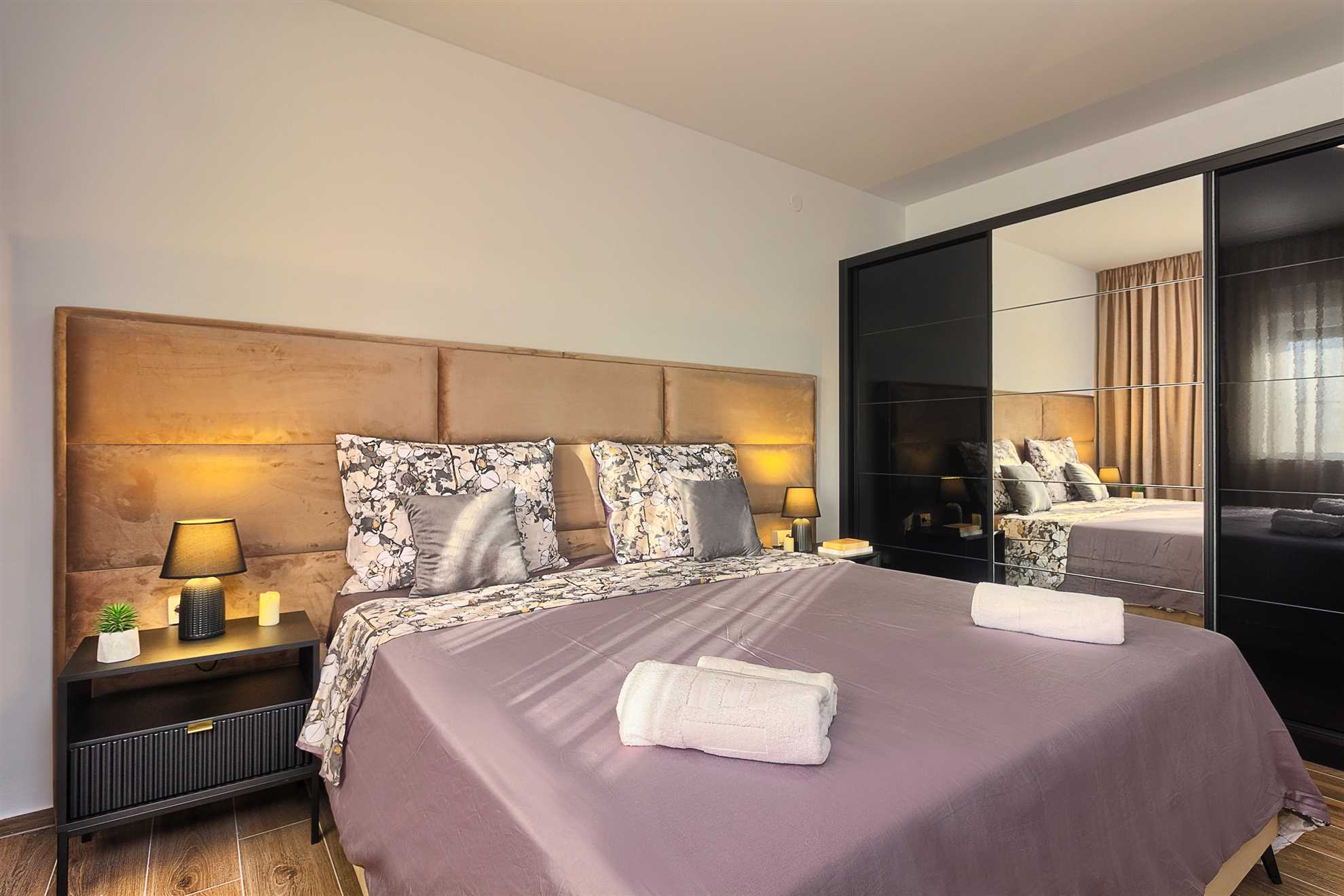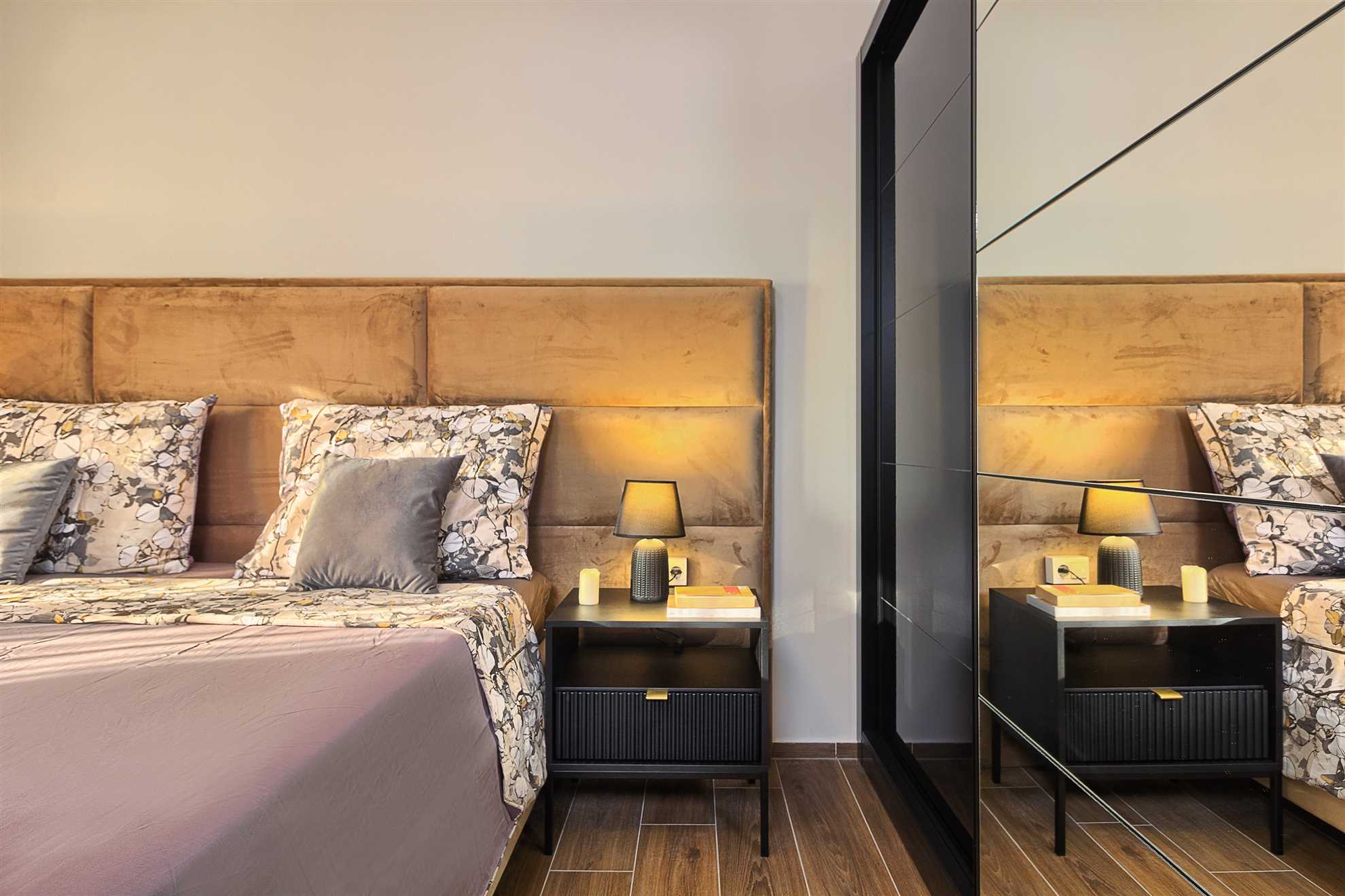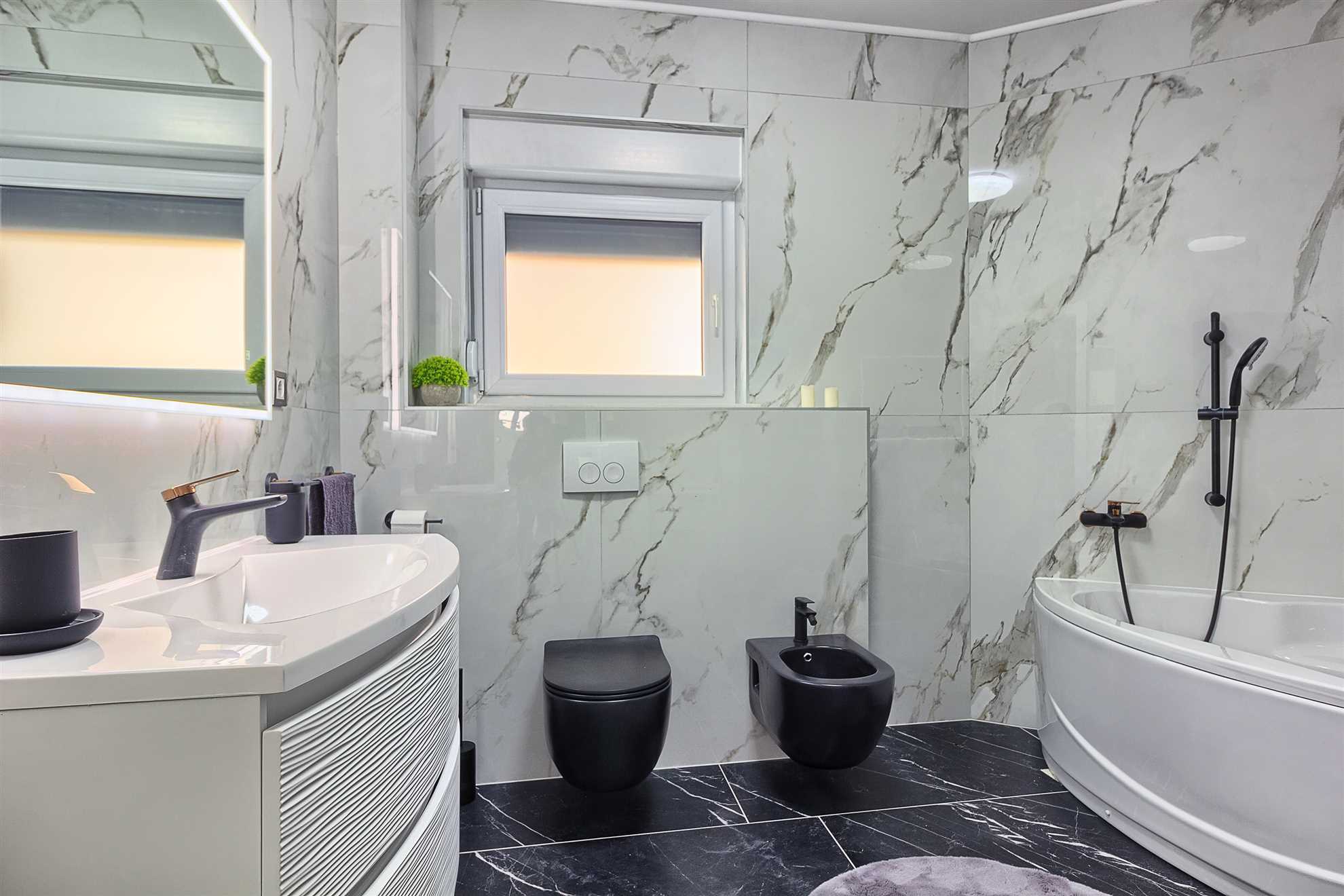 Welcome to Villa Moderna, a newly built architectural gem that beautifully blends contemporary design and a warm and inviting ambiance with focus on functionality. As you step inside, you are greeted by cool tile floors that lead through the open concept living space adorned with chic colors and funky art pieces, creating a refreshing and vibrant atmosphere. Two levels occupy the 340 m2 specious interior, each level with its own entrance. The upper level displays an open plan living room with an oversized plush sofa adjacent to the kitchen and a dining room, as well as 3 of the bedrooms (two with a double bed each, and one with 2 twin beds). Floor to ceiling windows and access to multiple balconies grant spectacular views of the sea and the serene nature around. Lower lever houses a gym, additional kitchenette, and the 3 remaining bedrooms (two with a double bed each, and one with 2 twin beds). From here walk out onto the luxurious terrace leading to an L shaped heated pool surrounded by sun loungers making this the perfect spot for soaking up the sun, or sharing a meal while enjoying breathtaking sunsets in an outdoor dining area. Electric BBQ is provided for your enjoyment. Wheather you are traveling wih family, friends or both Villa Moderna ensures a delightful escape for those seeking a harmonious blend of contemporary living, natural beauty and carefree holiday.