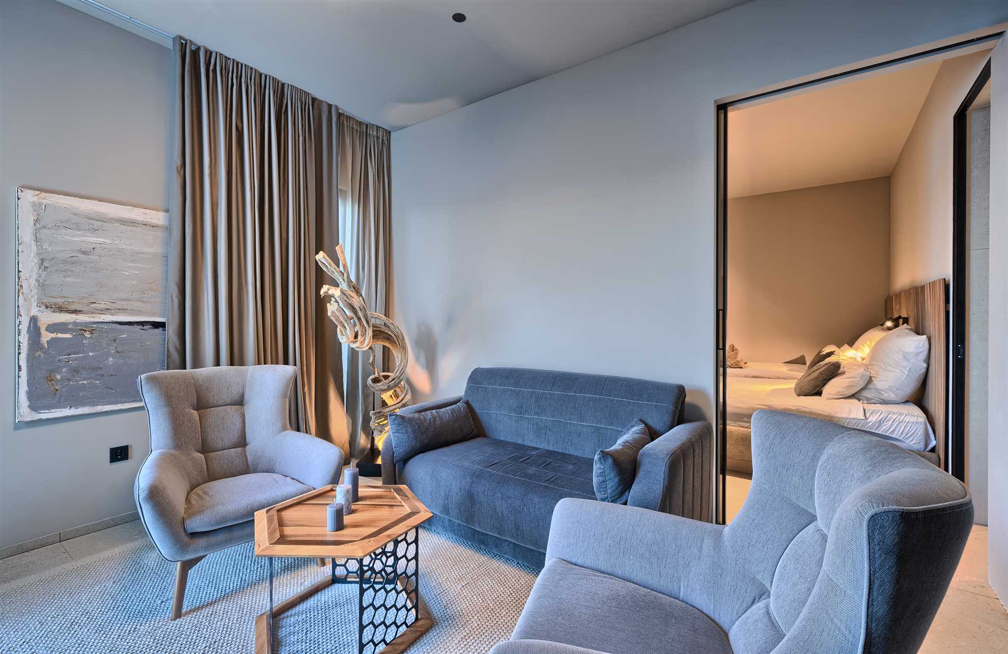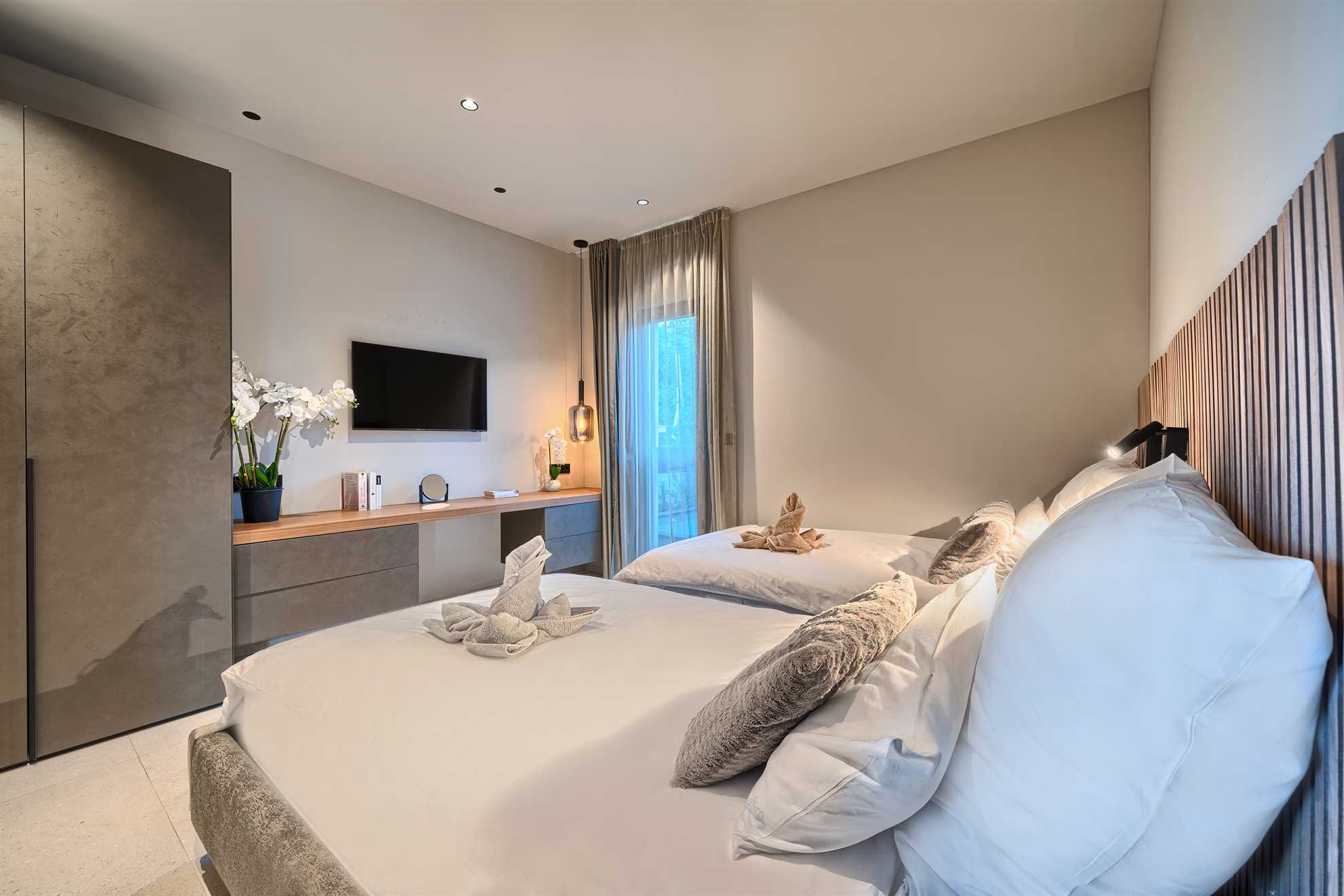 In four bedrooms eight guests are comfortably accommodated. One of the bedrooms has its own seating area/entertainment room with a sofa bed able to accommodate 1 or two more, if necessary.