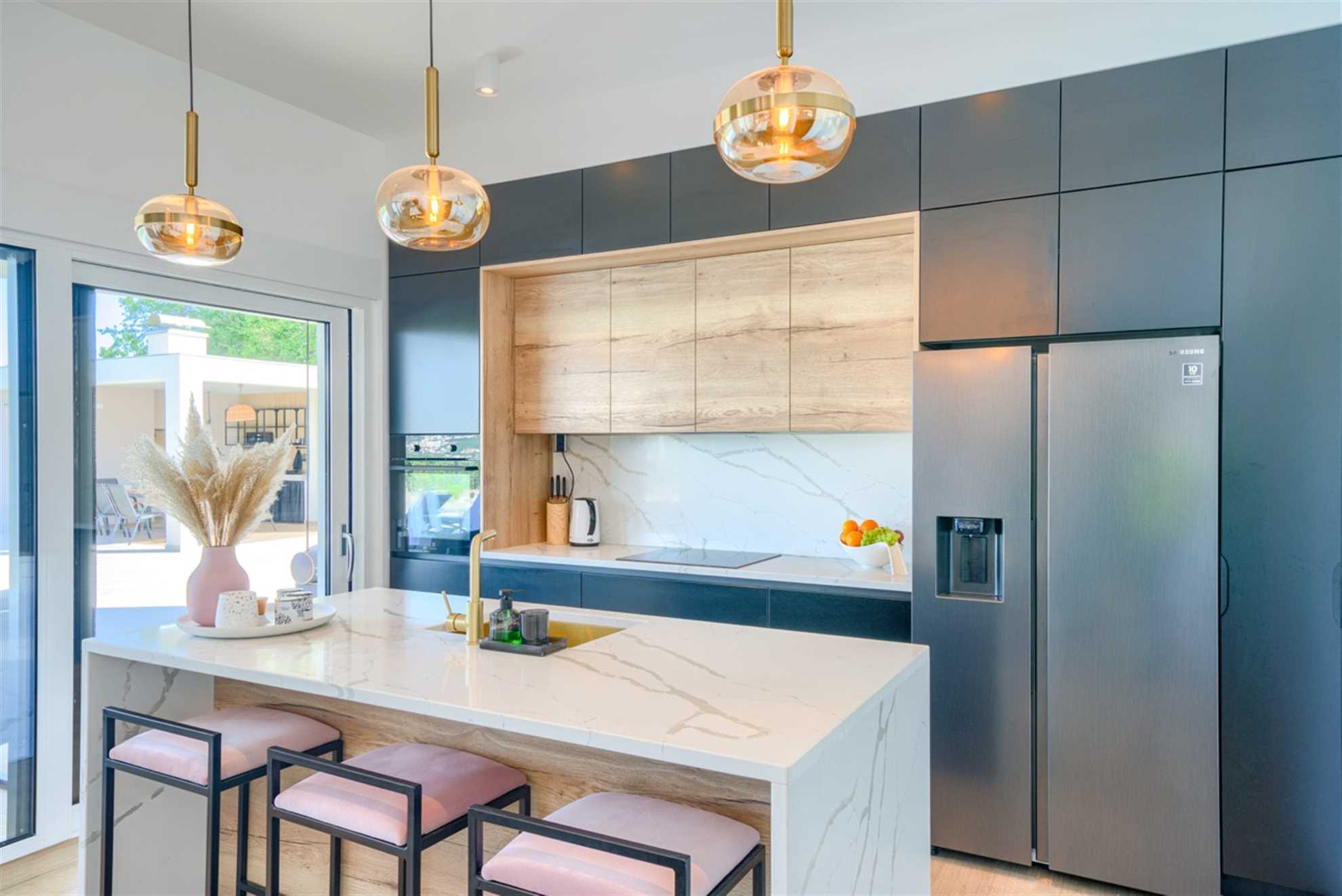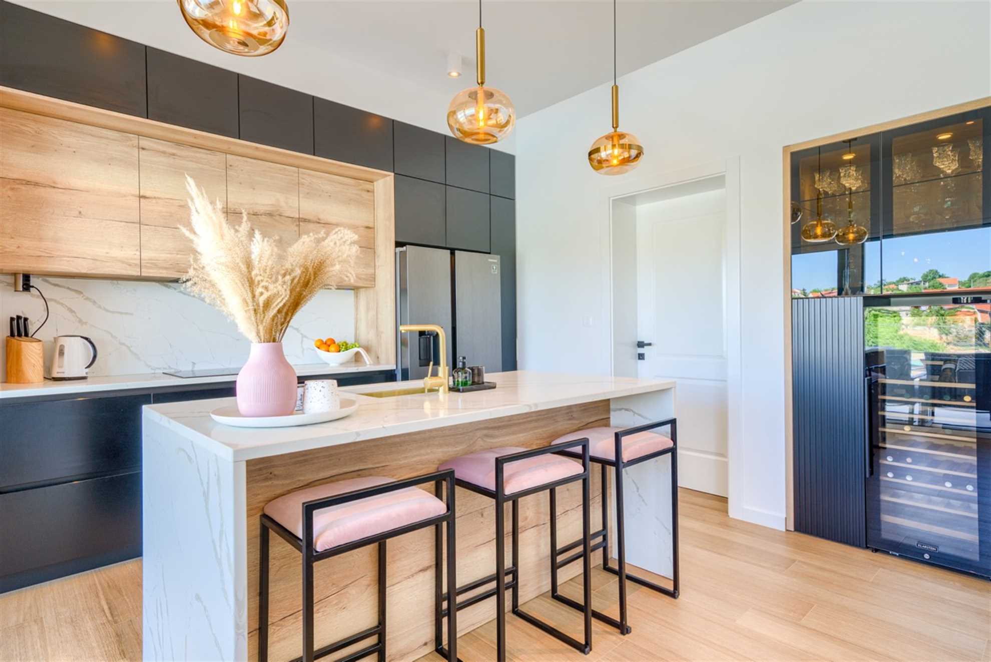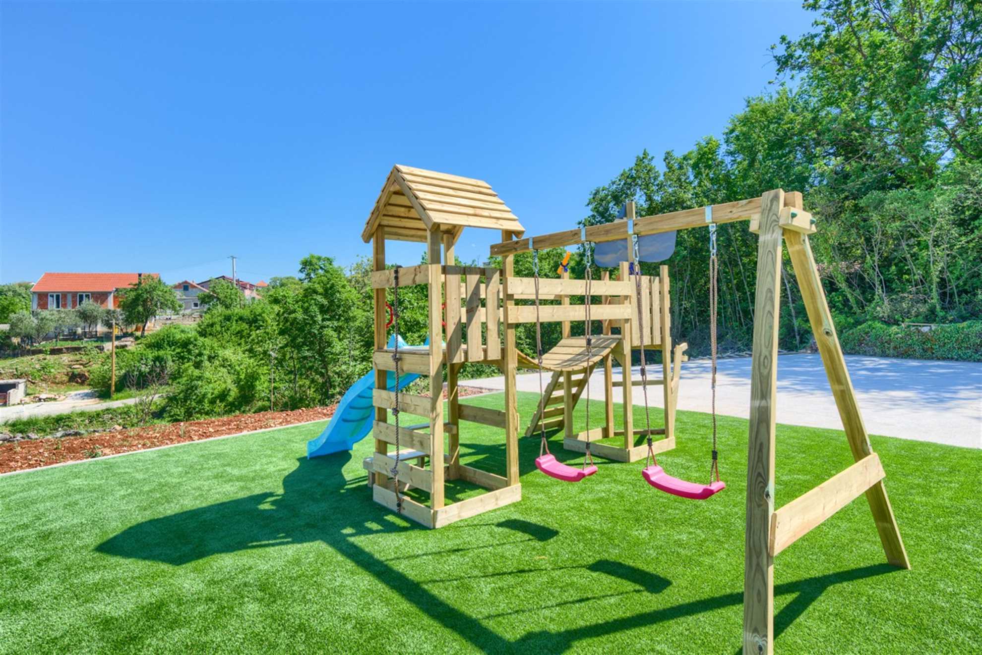New to the market Villa Lagos is there to satisfy any traveler’s whim, whether you are a couple of families with small or adult children or a group of friends. With a bigger than average pool, a sauna, a Jacuzzi, beautiful terraces with sun loungers, covered outdoor seating area and an additional outdoor kitchen completely equipped with a stove and its own dishwasher Villa Lagos is a great reason to gather your loved ones and enjoy a blissful time together in a place where you will wish for nothing. With floor to ceiling windows, an elegant and contemporary design utilizing soft and tasteful colors and plush, comfortable furnishings the size of the space offers plenty of privacy for everyone while the common areas make it ideal for quality time together. A children’s playground is also provided for their enjoyment and the owners have gone even further and equipped the home with a pool table, table tennis and table football to insure fun for the little ones and the not so little ones.
