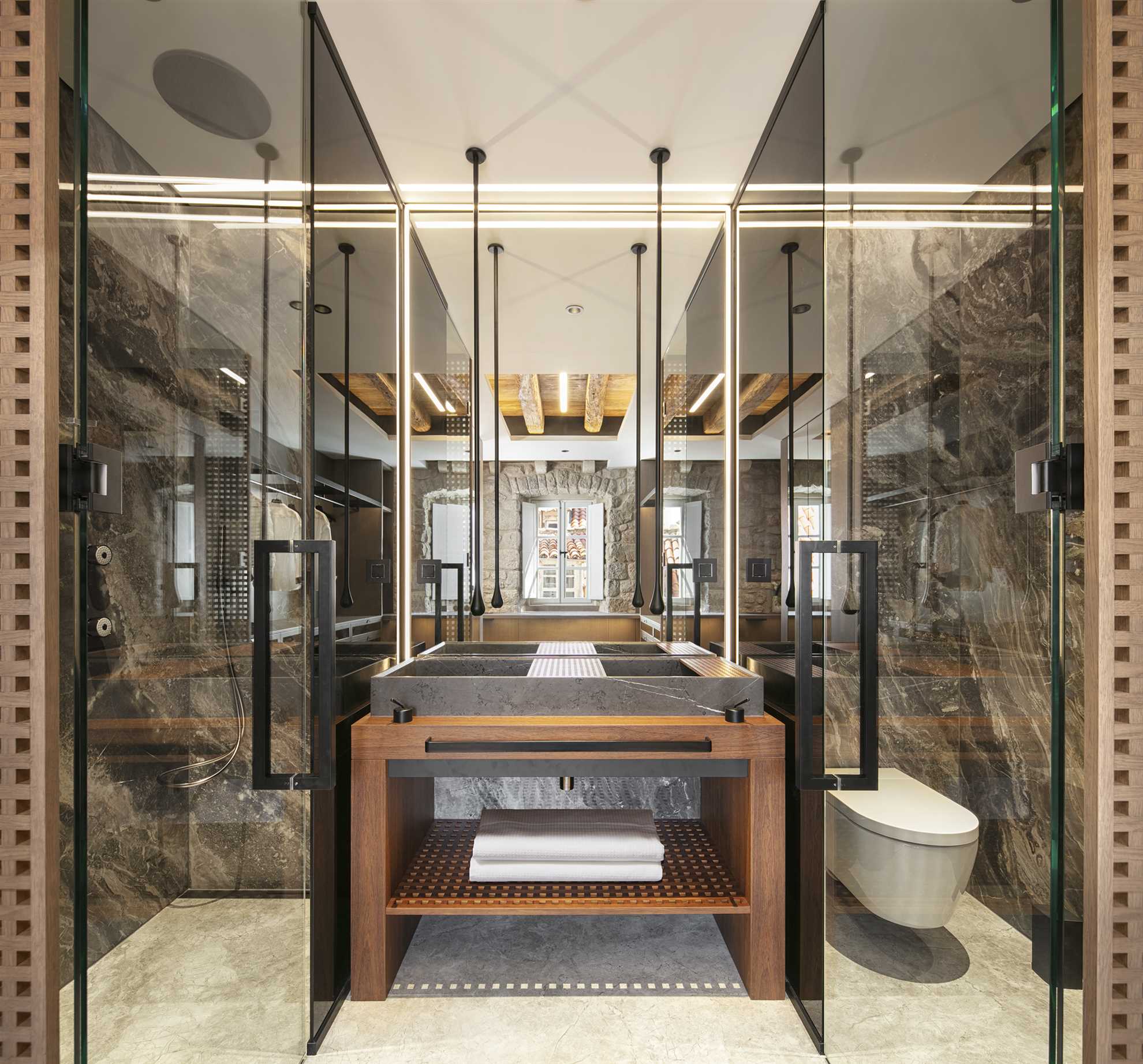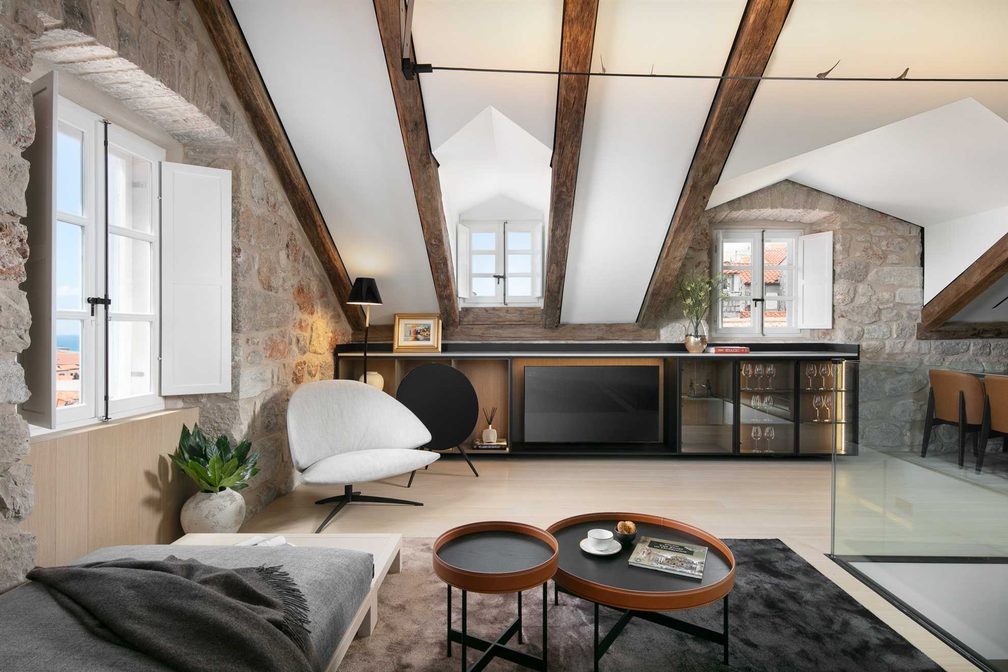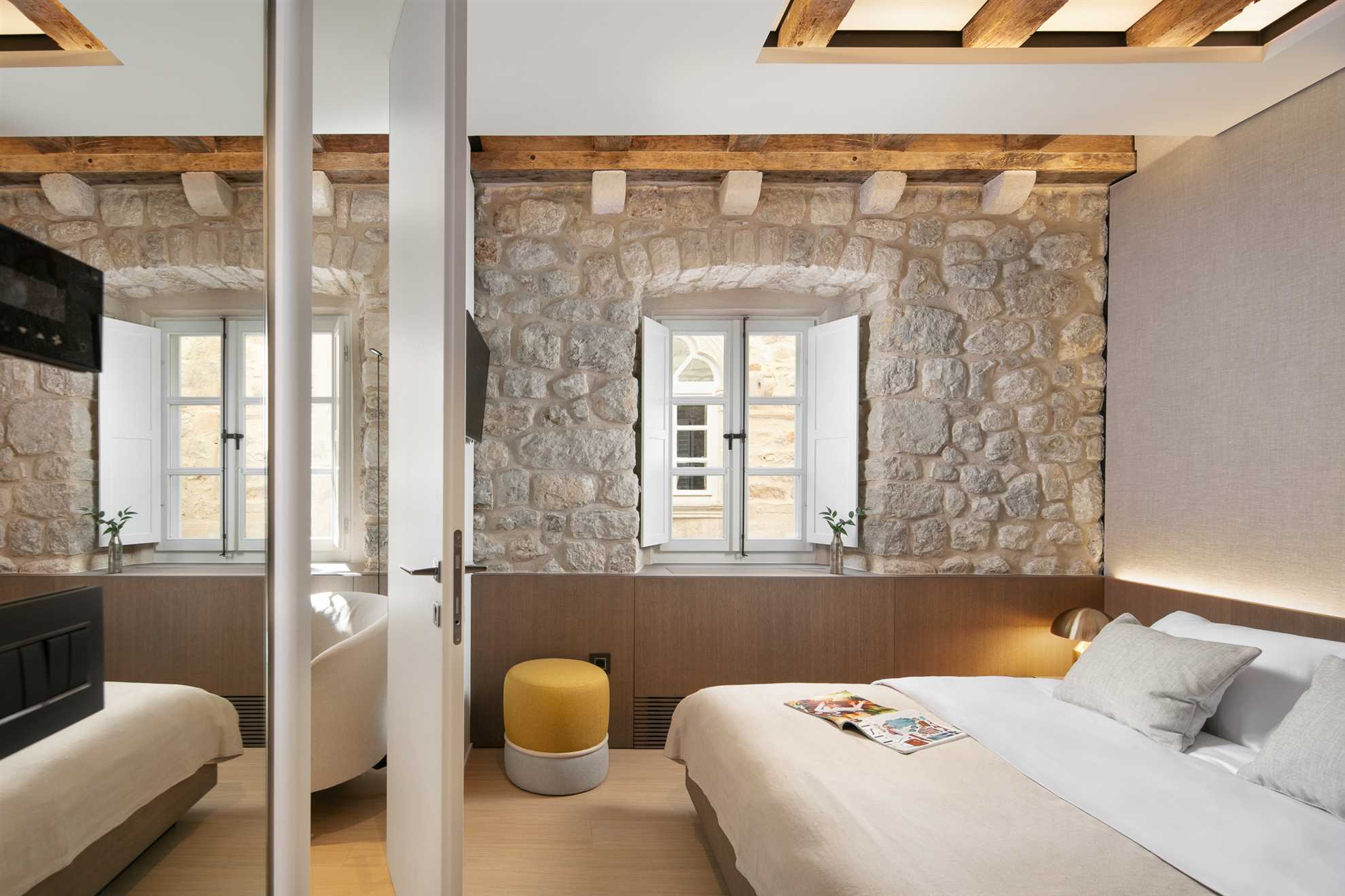 Indulge in the epitome of luxury living at the exquisite Villa Gloria, strategically located in the prime central location of Old Town Dubrovnik. Beautifully designed villa seamlessly blends modern sophistication with authentic charm, offering a unique fusion of elegance and comfort. Brilliant interior showcases natural stone walls, exposed wood beamed slanted ceilings, sleek design and top of the line facilities. Each bedroom is equipped with modern technology and conveniences, ensuite baths demonstrating the finest materials in contemporary style, walk in closets and tailored fabrics. From the balconies revel in the panoramic views of the picturesque town and the blue Adriatic.