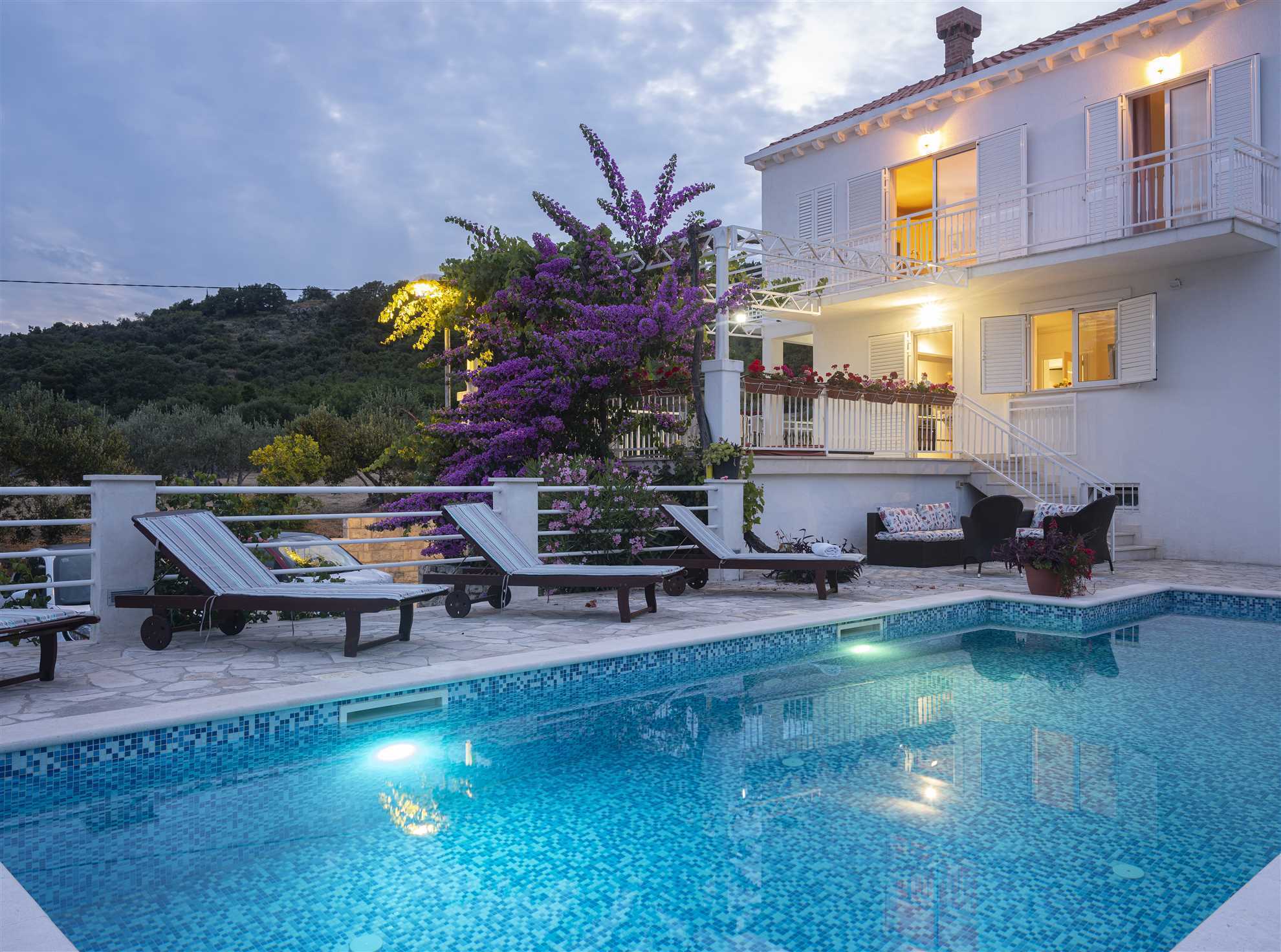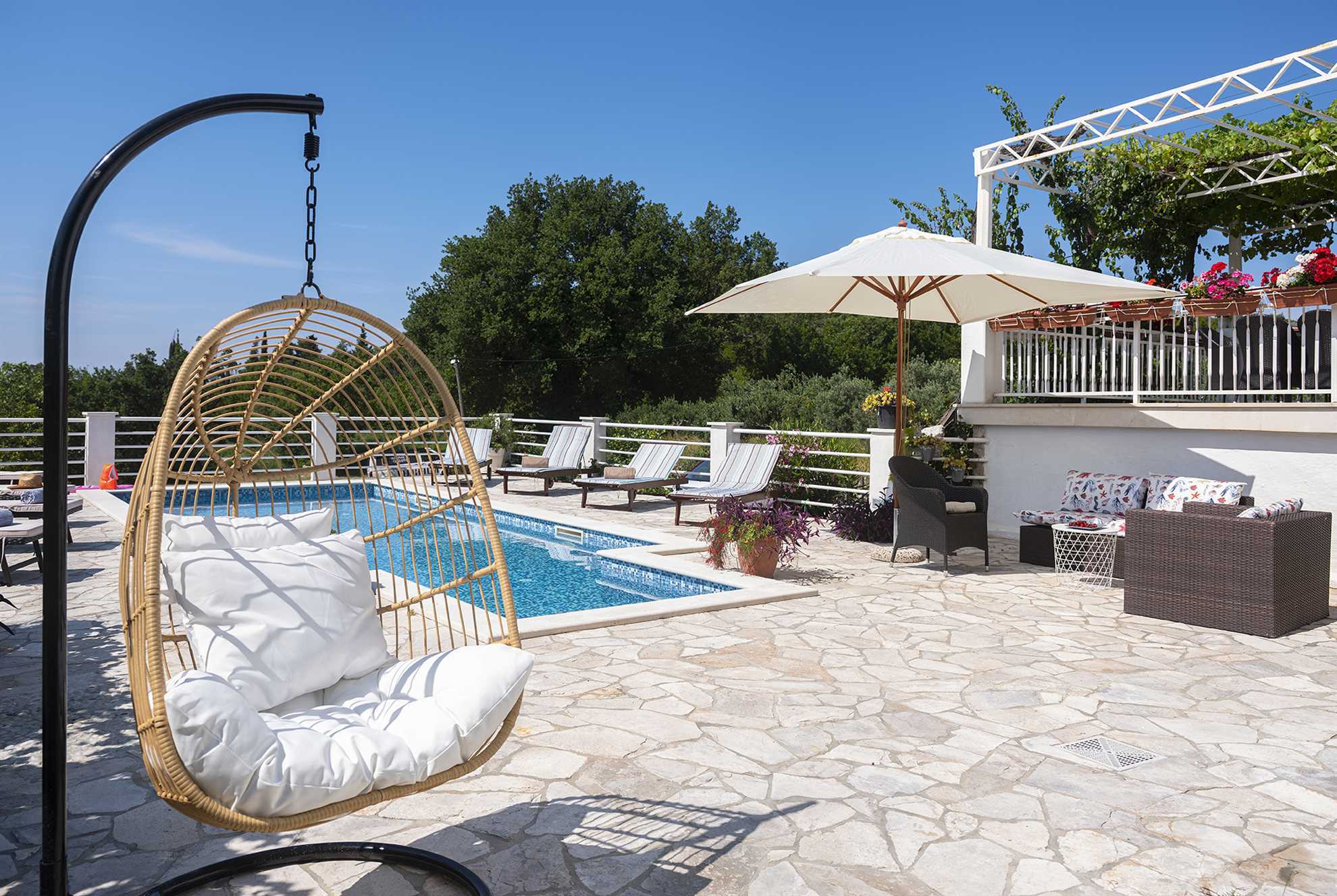 Welcome to your holiday wrapped in comfort and tranquility surrounded by the unspoiled beauty of nature. Amidst the lush greenery, Villa Nature's Embrace features a delightful garden with meticulously arranged flowers and a generously sized swimming pool, offering a serene retreat. The charming outdoor dining area, equipped with a built in authentic barbecue, provides the perfect setting for al-fresco gatherings with panoramic sea views as a backdrop.