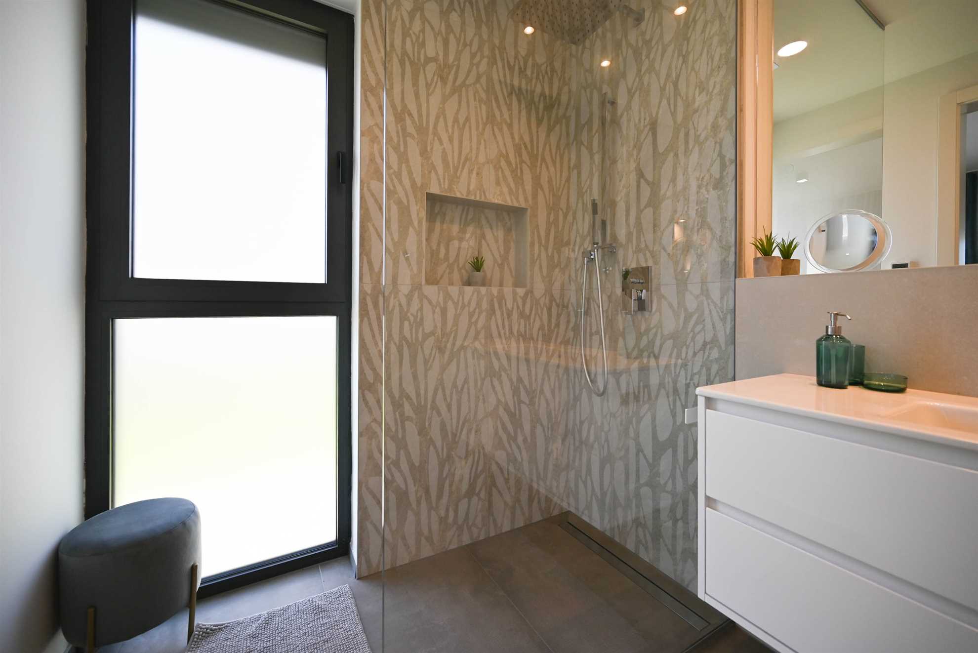 Two bedrooms with comfortable box-spring beds – each with its own bathroom – ensure privacy and relaxation. The spacious living area leads directly onto the large, sunny terrace with a private pool – ideal for sunbathing and swimming. A comfortable lounge area invites you to enjoy cozy evenings under the stars.