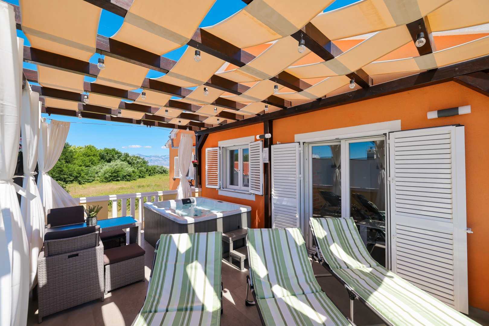 Sunset Apartments are located in a quiet and peaceful part of Privlaka. There are 2 flats in one building. The A1 apartment offers a private jacuzzi and sea view.