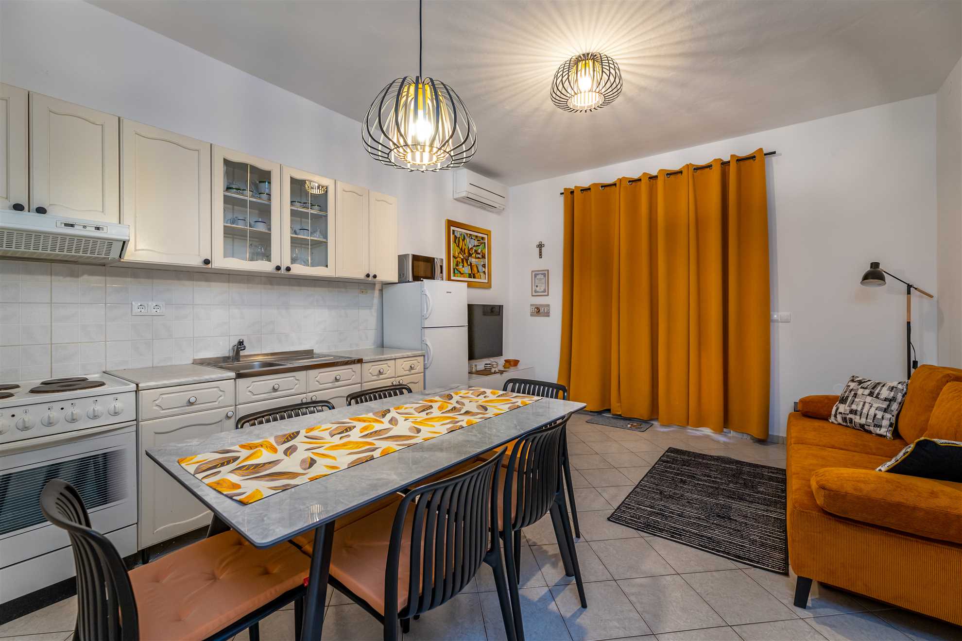 A highlight of this exquisite space is its captivating living room. It's a space where you can sink into the comfy couches after a tiring day of exploring the beautiful Baska or enjoy your favorite book by the corner, soaking in the calming vibes the space effuses. Here, the uplifting aura and modern aesthetics promise to delight your senses while enabling you to make the most of your vacation.