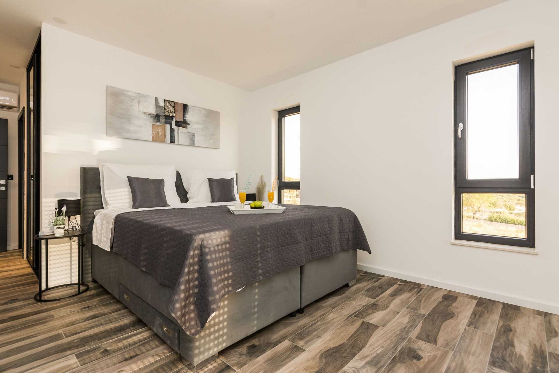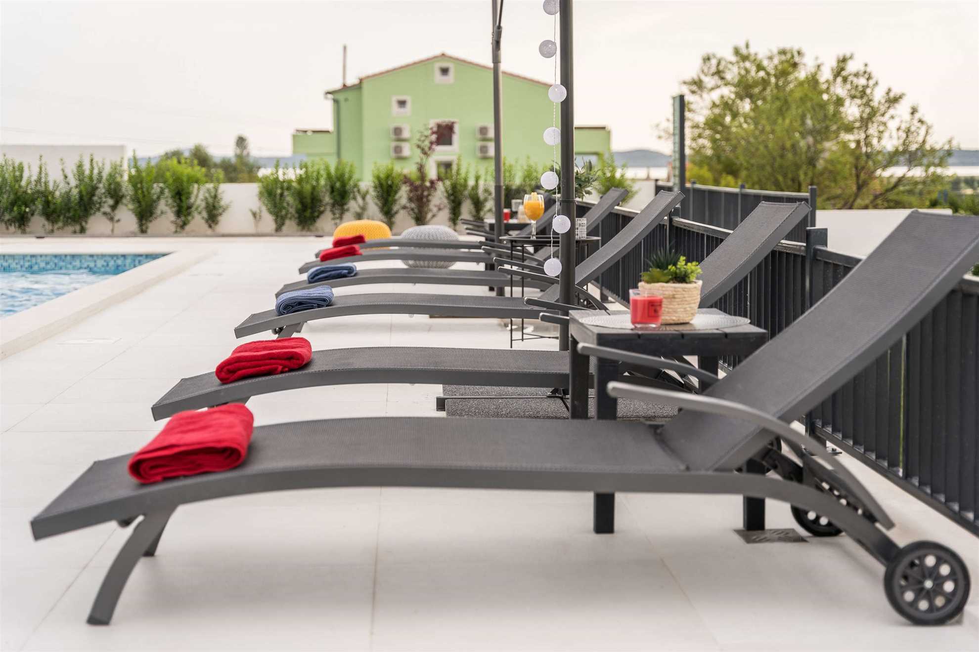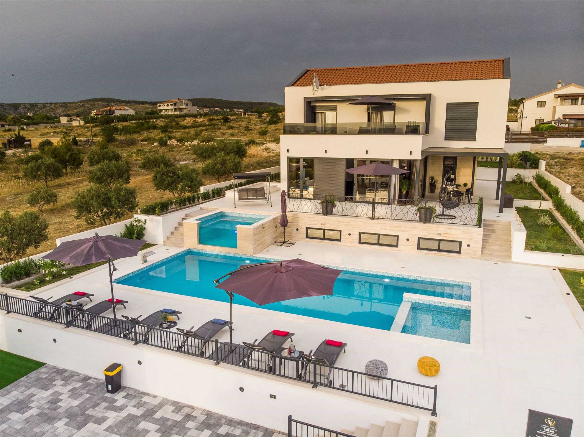 Within the renowned Dalmatian region, this brand-new luxury villa offers the perfect retreat for families and groups of friends. Spread across two levels of its contemporary 240 m2 interior, the upper floor houses the sleeping quarters, featuring three ensuite bedrooms and granting access to a spacious terrace. Downstairs, the ground level unfolds into an inviting open-plan layout, seamlessly integrating a living area, elegant dining room for eight, and a modern kitchen with a central island, alongside an additional bedroom. Step outside to discover a summer oasis, complete with a saltwater pool and jacuzzi, complemented by a meticulously manicured Mediterranean garden and completely separate summer kitchen with built in authentic BBQ. Moreover, with a fully-equipped gym available, the villa ensures that both relaxation and recreation are within reach. Kids will delight in the abundance of activities, including a playground with a trempoline while the villa's proximity to both the tranquil lake and the sparkling sea ensures endless aquatic adventures. Villa Summer Dream provides the ultimate blend of comfort, luxury, and family-friendly amenities for an unforgettable vacation experience.