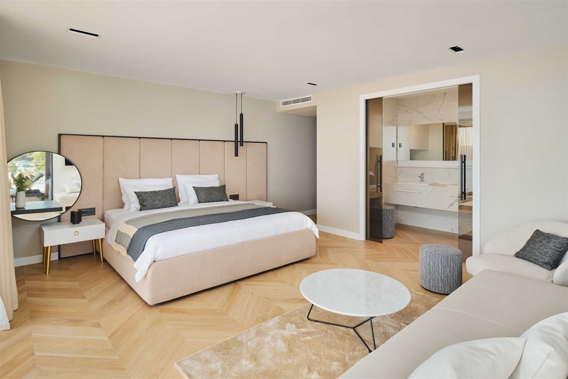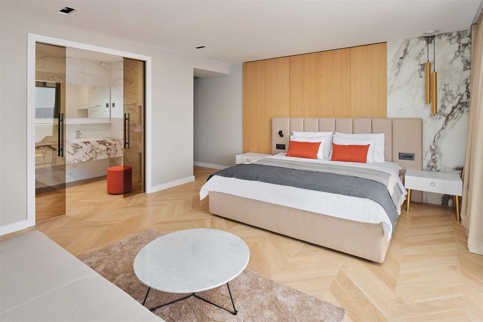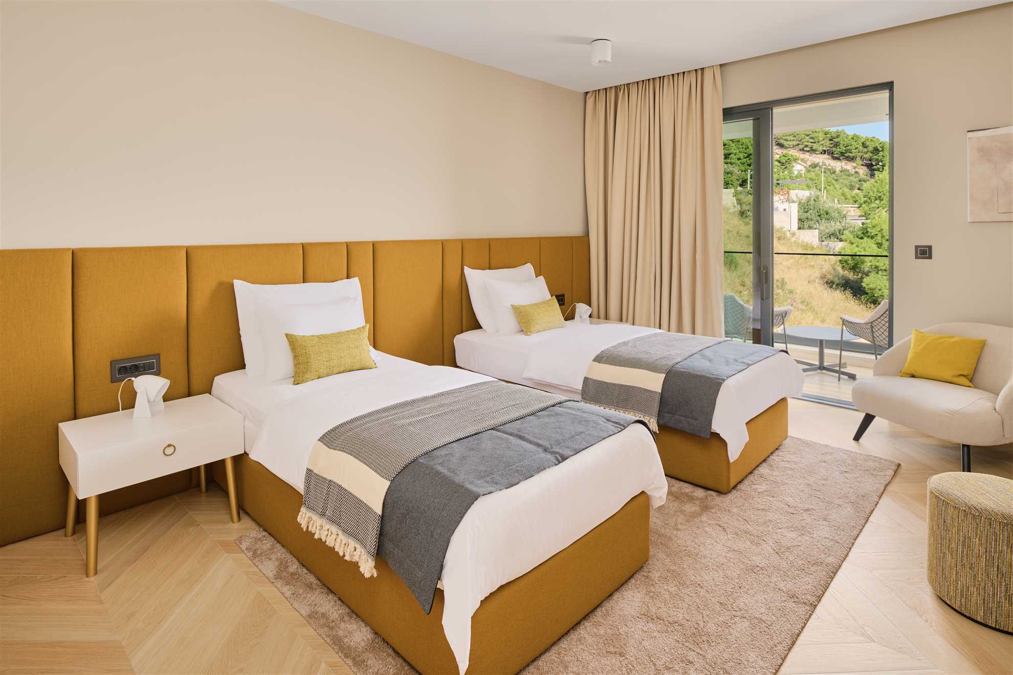 Welcome to a breathtakingly luxurious villa situated along the picturesque Dalmatian seashore. Upon entering, guests are greeted with a sense of grandeur, as every room exudes sophistication and style. The extraordinary Seashore Belle boasts 8 spacious ensuite bedrooms, each a sanctuary of comfort and elegance, adorned with lavish furnishings in beautiful colors. Four of the bedrooms face the sea and have access to the terrace each with each own jacuzzi inviting guests to unwind in blissful serenity. Outside, a heated infinity pool glistens with sweeping vistas of the azure waters. Plenty of sun loungers with umbrellas are provided ensuring relaxing days in the sun. A separate outdoor kitchen is provided, accompanied by a spacious dining table where dining to a refreshing sea breeze and undisturbed sea views is an every day reality. Fitness enthusiasts may continue with the wellness plan in a dedicated workout room while those seeking rejuvenation may take advantage of the spa room, complete with a sauna and an indoor pool - a haven of tranquility. With impeccable amenities, unparalleled location and every conceivable luxury Villa Seashore Belle promises an unforgettable retreat where dreams merge with reality.