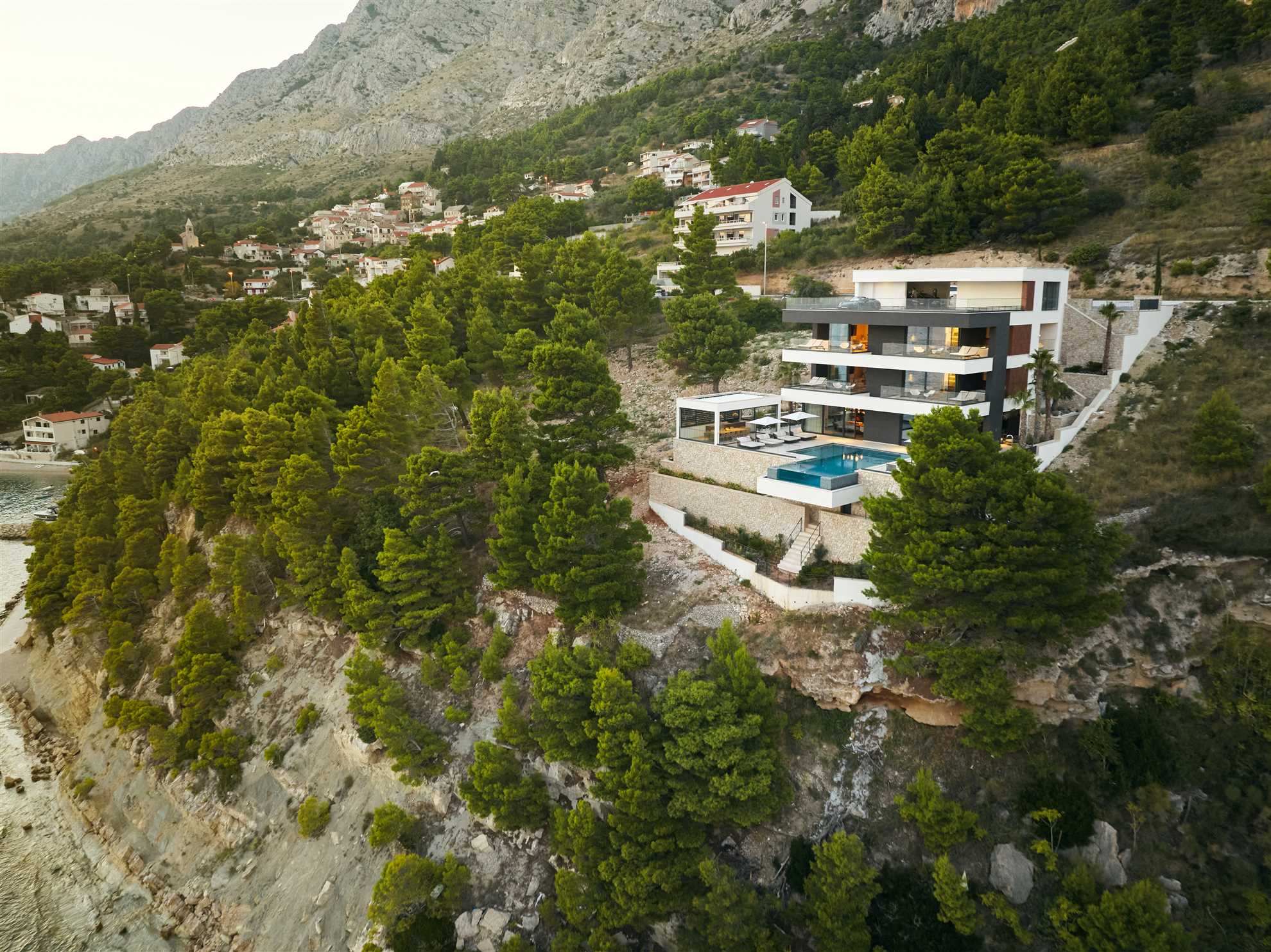 Located on the most scenic road in Croatia, in walking distance to the beach or a restaurant, the location provides privacy and tranquility. Plenty of activities are offered in the area such as climbing, rafting and canoeing. A day trip to the islands is recommended. A mere fifteen-minute drive to Omiš, a small port and fishing village, is certainly worth the trip. The absence of hotels make it an enjoyable and relaxing tourist destination. Grab a seat in one of the cafés, order a glass of mali plavac and ask the local to tell you the story of Omiš pirates. Further up the road is Split, one of Dalmatia’s bigger cities and a very popular tourist destination. A day trip is a must to experience the culture, historic sites and to indulge in one of many dining options. Welcome to Dalmatia.