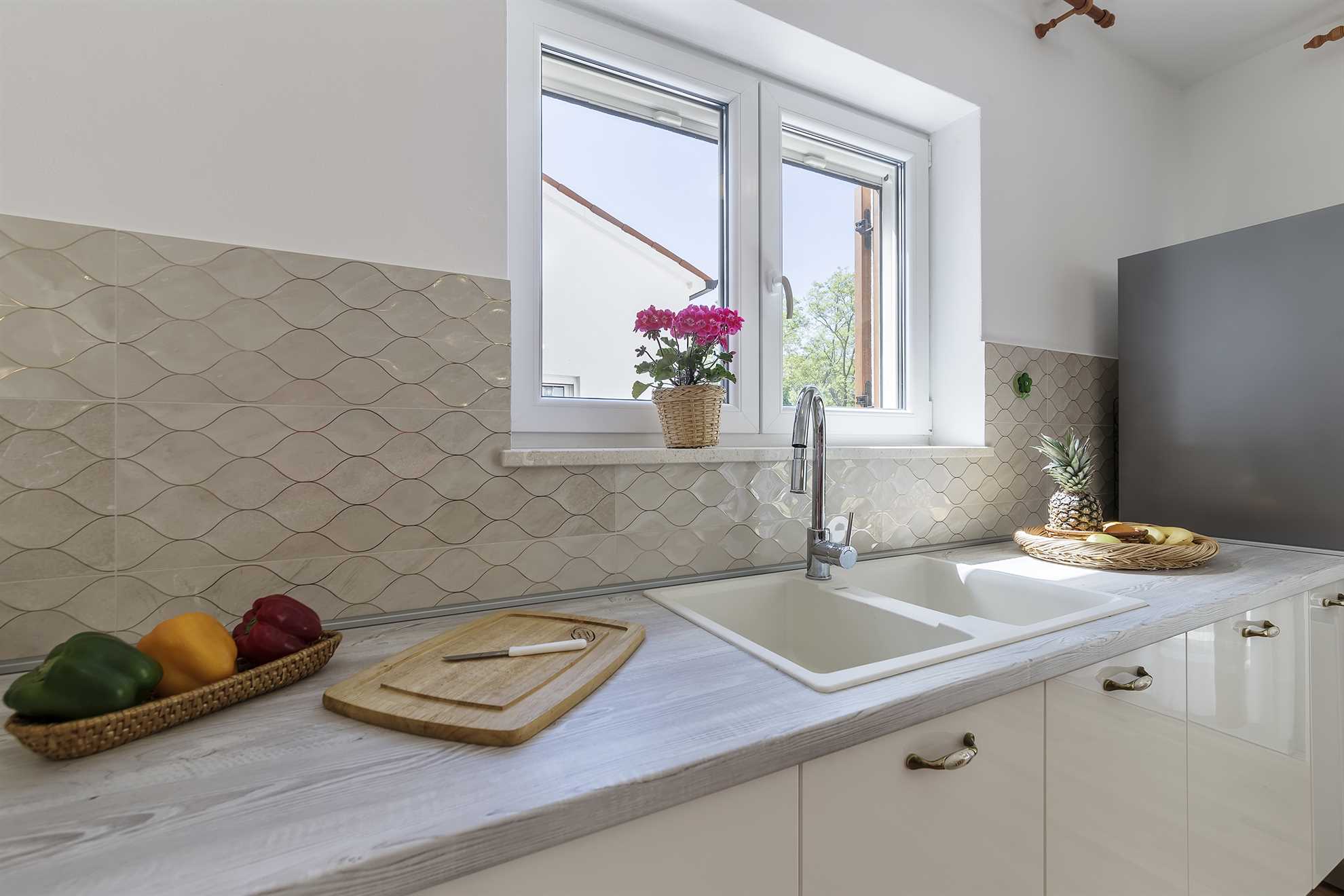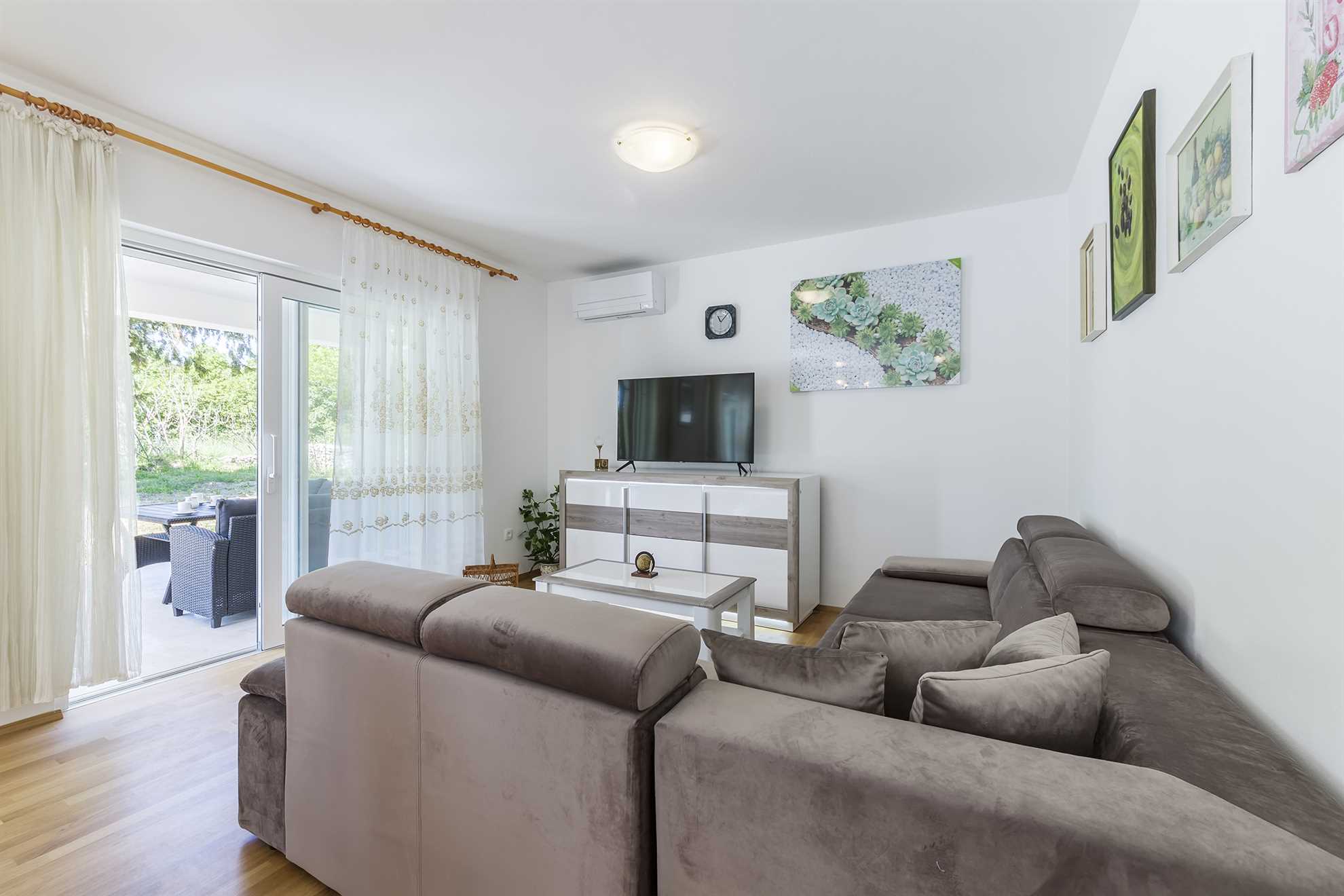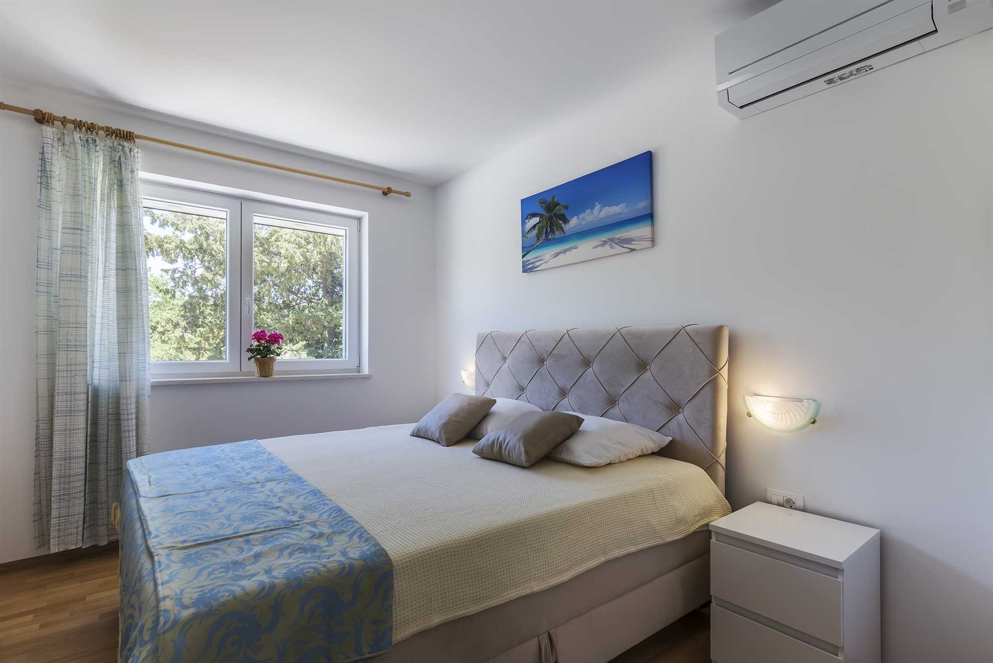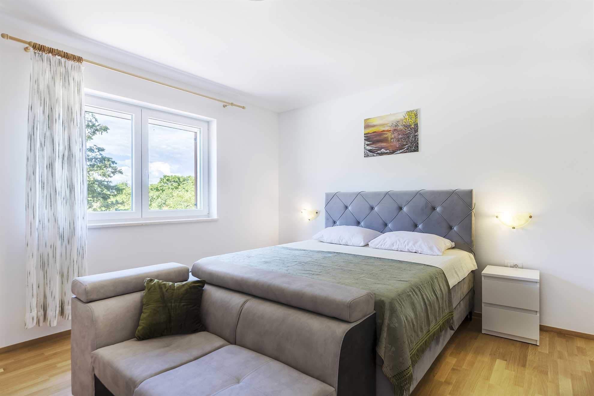This charming villa is located on a spacious plot of over 4,000 square meters and is surrounded by greenery, which contributes to a peaceful and pleasant environment. The villa offers its guests accommodation in two separate buildings, one next to the other, which provides additional privacy during the stay. The villa can accommodate 12 people in a total of 6 bedrooms, which are distributed in both houses. Each house, in addition to bedrooms and bathrooms, also has its own fully equipped kitchen, living room and dining room. The pool with salt water is located on the terrace, which is a favourite location for relaxing but also for preparing specialties since the barbecue is in the immediate vicinity. In order to hide from the sun, there is also a covered area with garden furniture. This villa is truly an ideal choice for a peaceful and pleasant vacation with family or friends.
