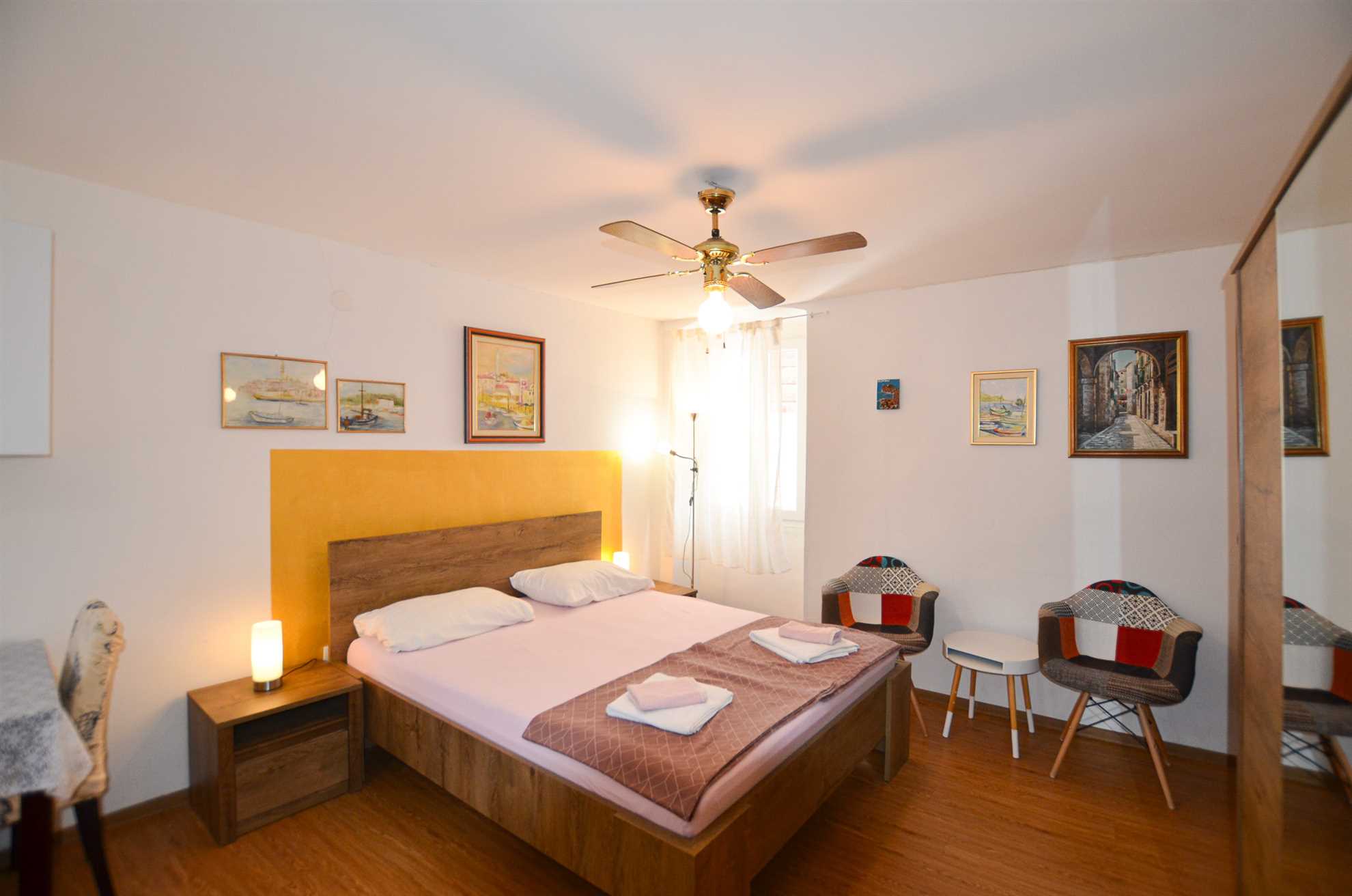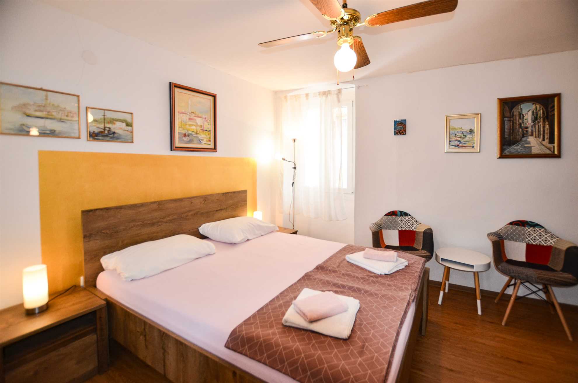 A nice studio situated in downtown Rovinj. The place is situated on the third floor available only by stairs. The studio has a kitchenette with a gas stove and oven, a washing machine, fridge and freezer, water kettle and dining area. The bedroom has Satellite TV, internet WI FI, a queen size bed and air condition. The bathroom has a shower and towels are provided. Since the studio is in downtown it is close to the main square,coffee bars, restaurants, supermarkets, boutique shops and bakeries.