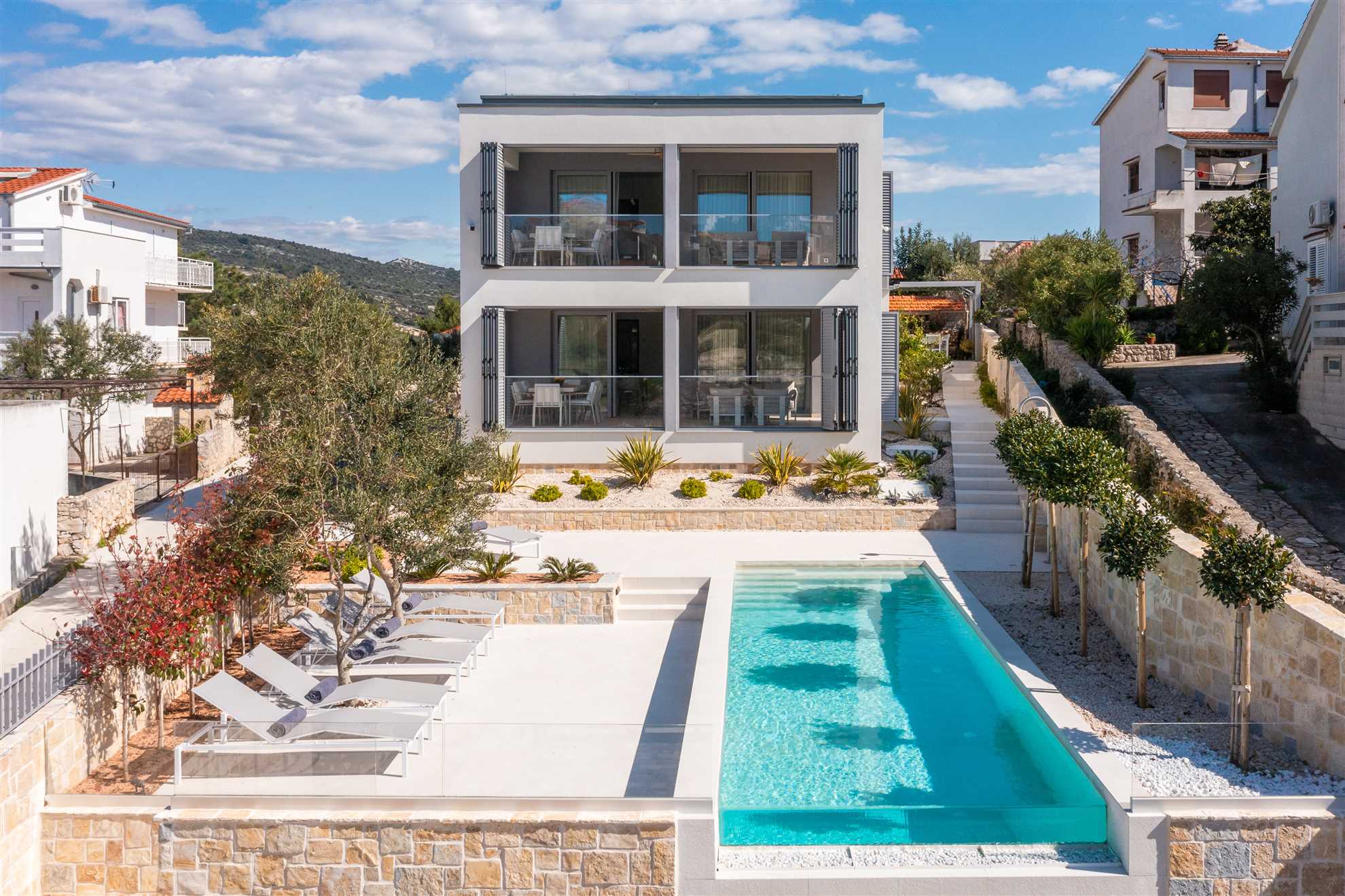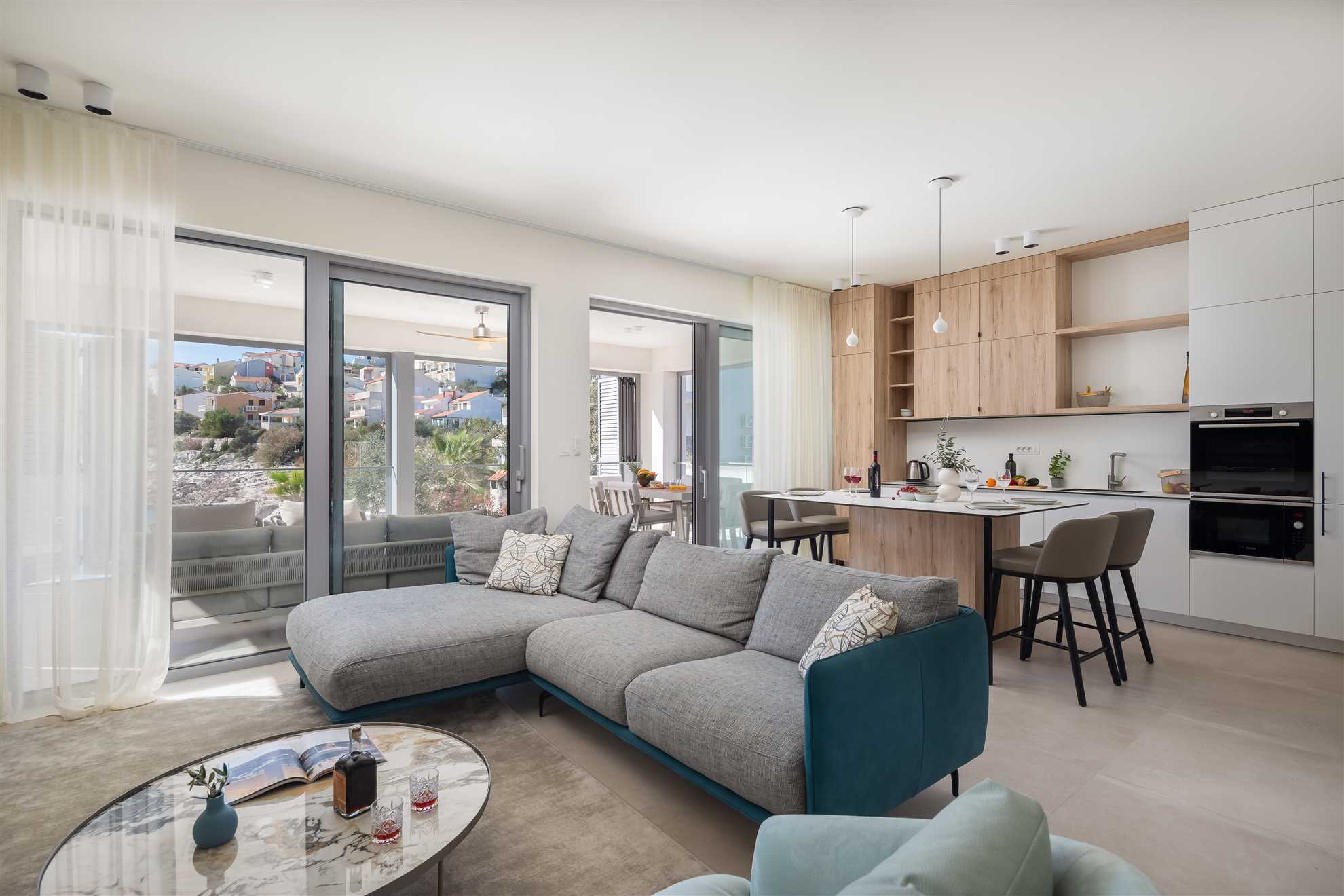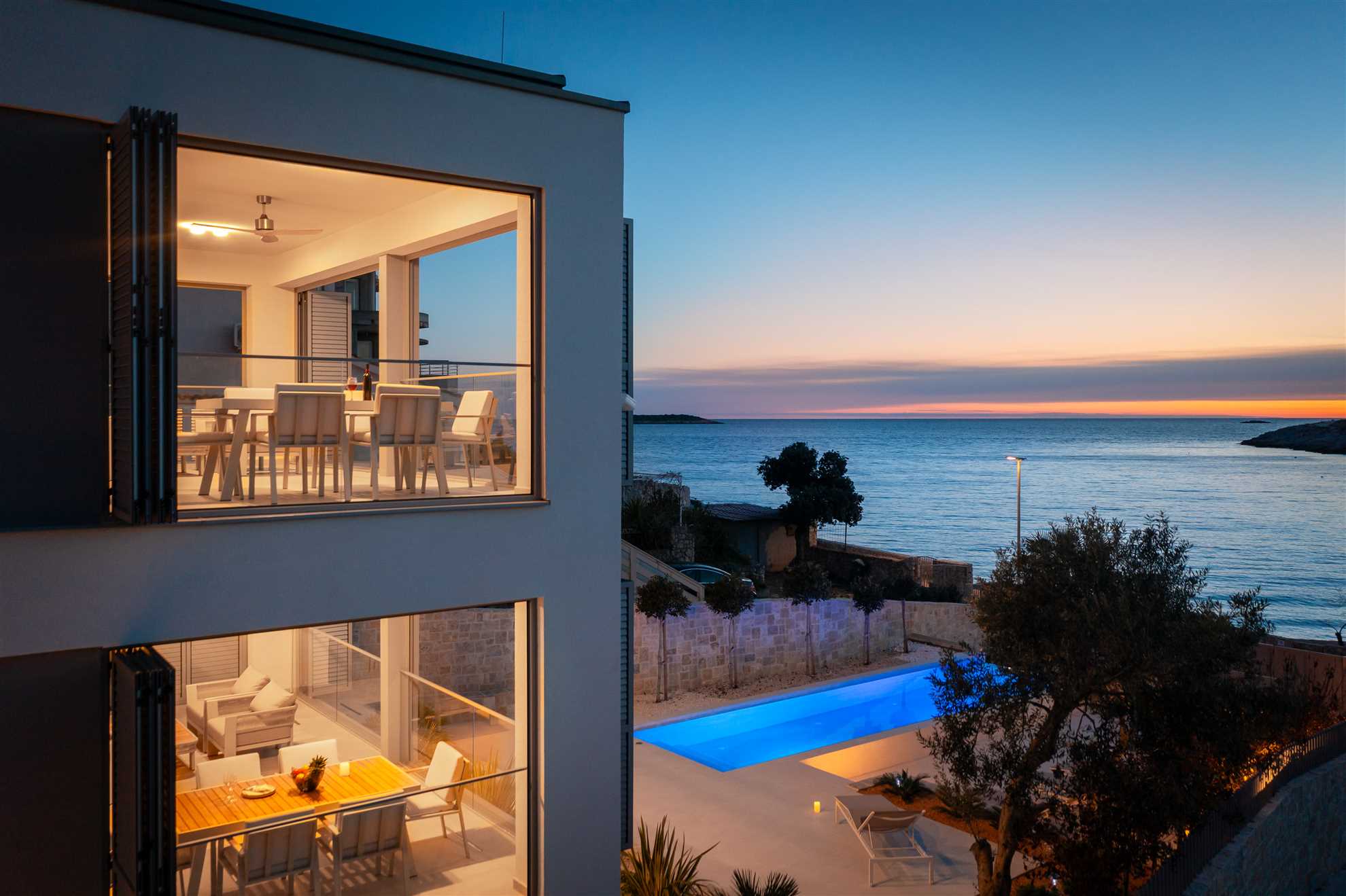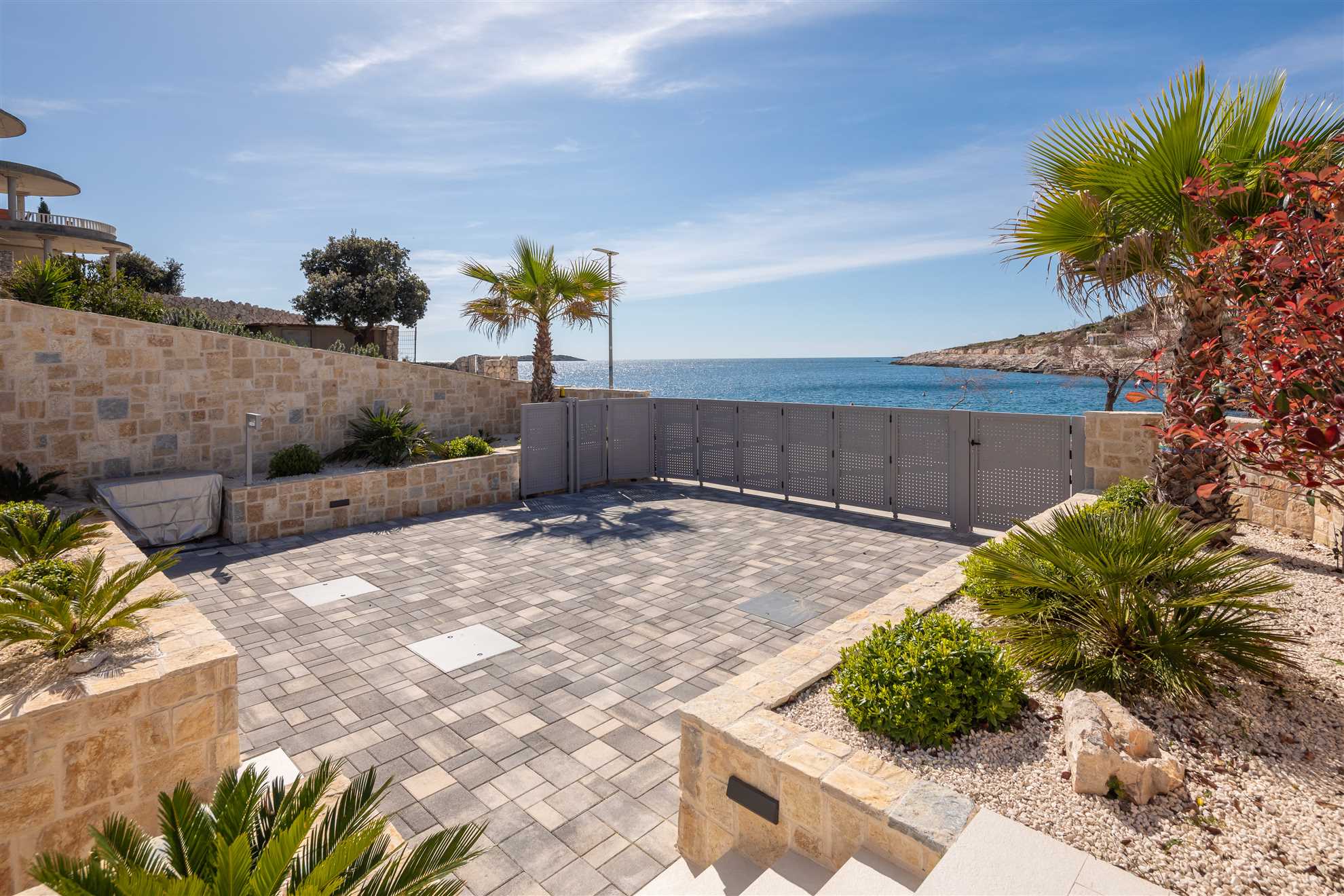 Welcome to your ultimate holiday retreat, Beachside Villa Oro. This magnificent beachfront villa stands proudly across two floors, encompassing 300 square meters of elegant interior. Three bedrooms on each level ensure ample space and comfort for all guests. Indulge in relaxation with a dedicated spa room, complete with a gym, sauna, and jacuzzi. Two enclosed summer terraces, approachable from each of the floors, are an ideal setting for enjoying views of the horizon any time of day. Once outside, you’ll be greeted by a heated MAGNA pool, a summer kitchen with authentic built in BBQ and an alfresco dining area, perfect for lovely times spent together. We invite you to immerse yourself in the beauty and luxury of Villa Oro, where every moment is destined for relaxation and enjoyment.