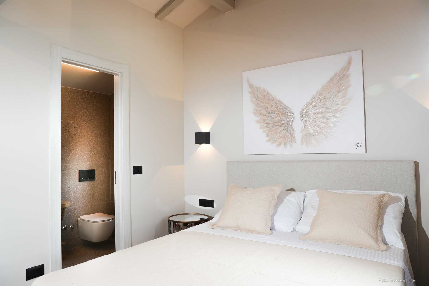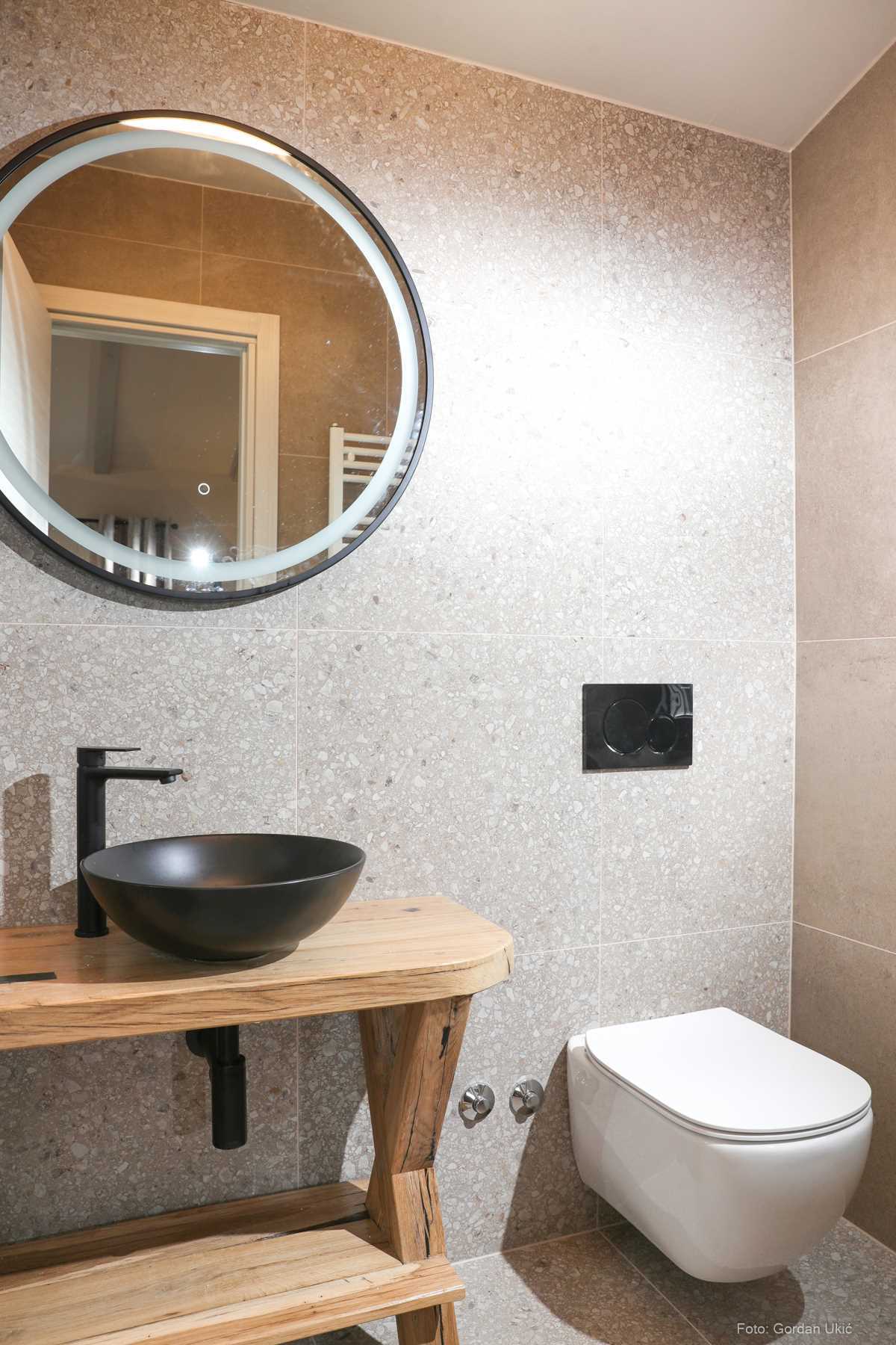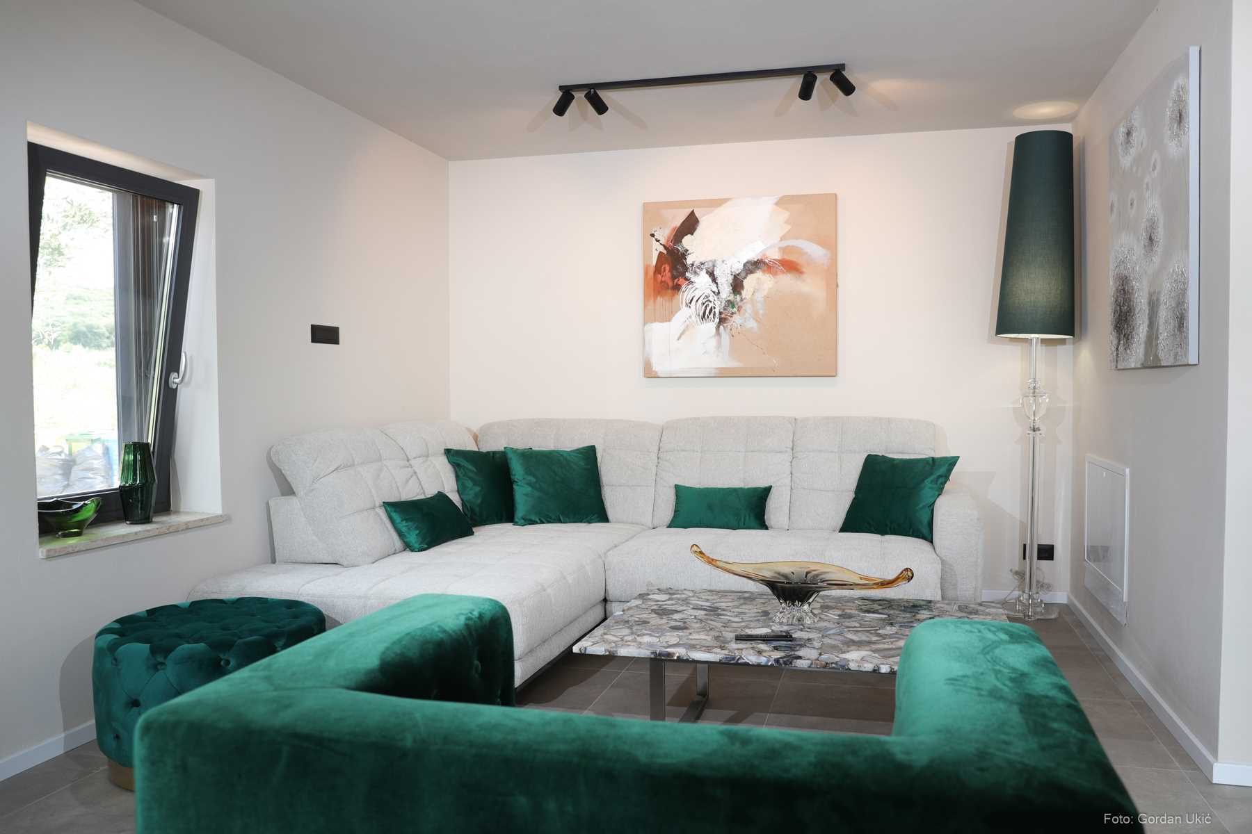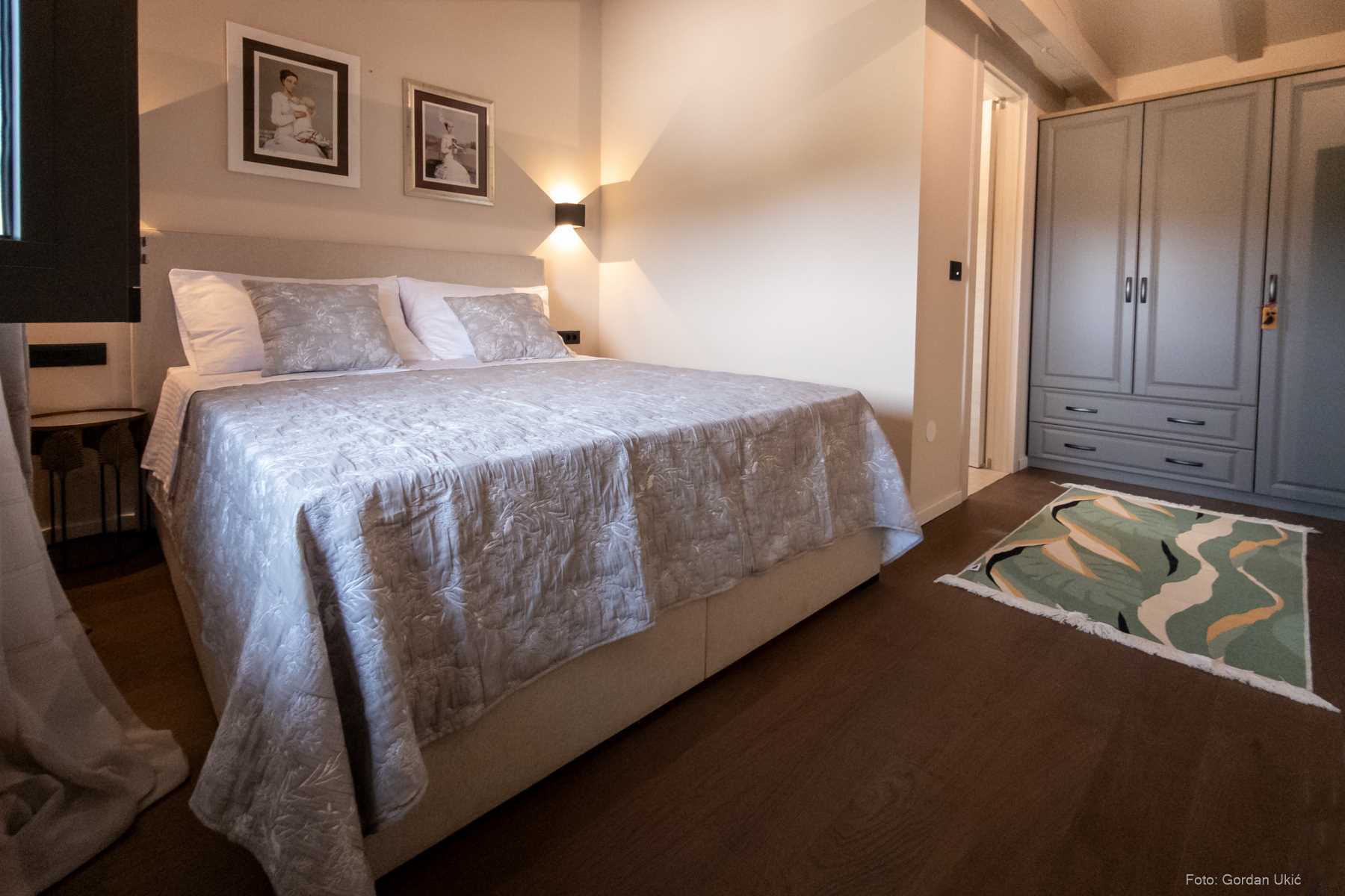 Going out to the terrace, there is an outdoor dining area and an outdoor kitchen you can use, as well as a barbecue grill. The terrace is also furnished with sun loungers and sun umbrellas to best enjoy in the amazing hot tub or in the fresh water of the swimming pool. The house is surrounded by a big olive garden (5000sqm) which makes it a perfect location for families with kids. The area is very calm and quiet so you can enjoy in the peace, the sun and the nature and simply relax! Everything you may need can easily be reached by car, but cycling, running and walking routes are all available close by, leading you to the gorgeous Rovinj beachline or to the town center.